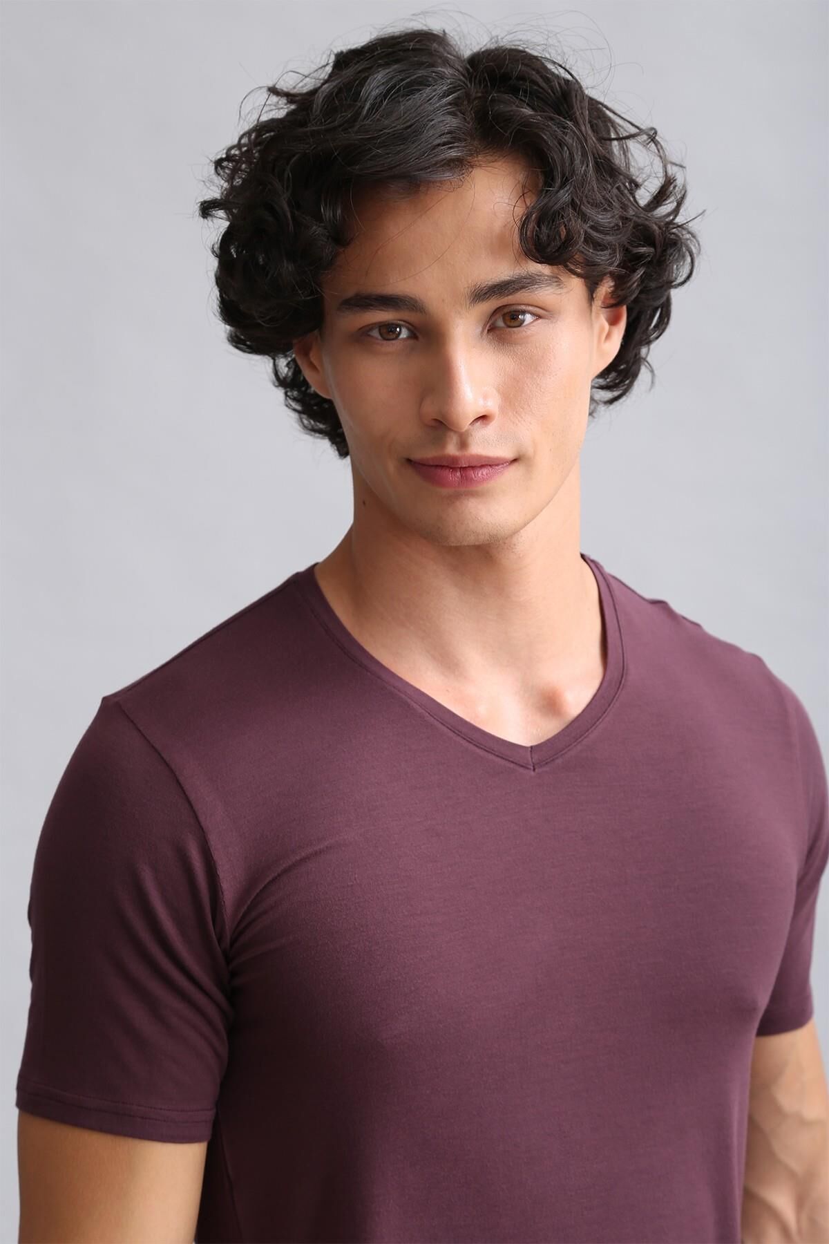 Mısırlı ORGANIC Pamuklu HERCULES Slim Fit V Yaka Fanila / T-Shirt Mor