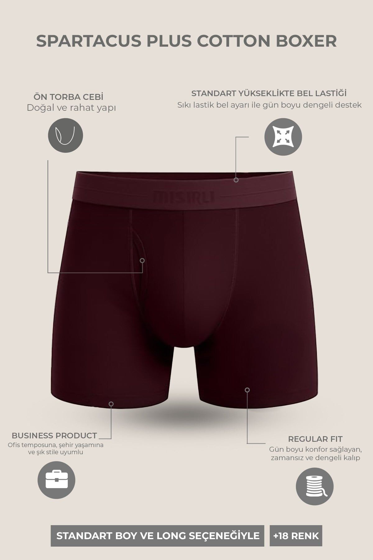 Mısırlı ORGANIC Pamuklu SPARTACUS PLUS PERFORMANCE Long Boxer Fit Green