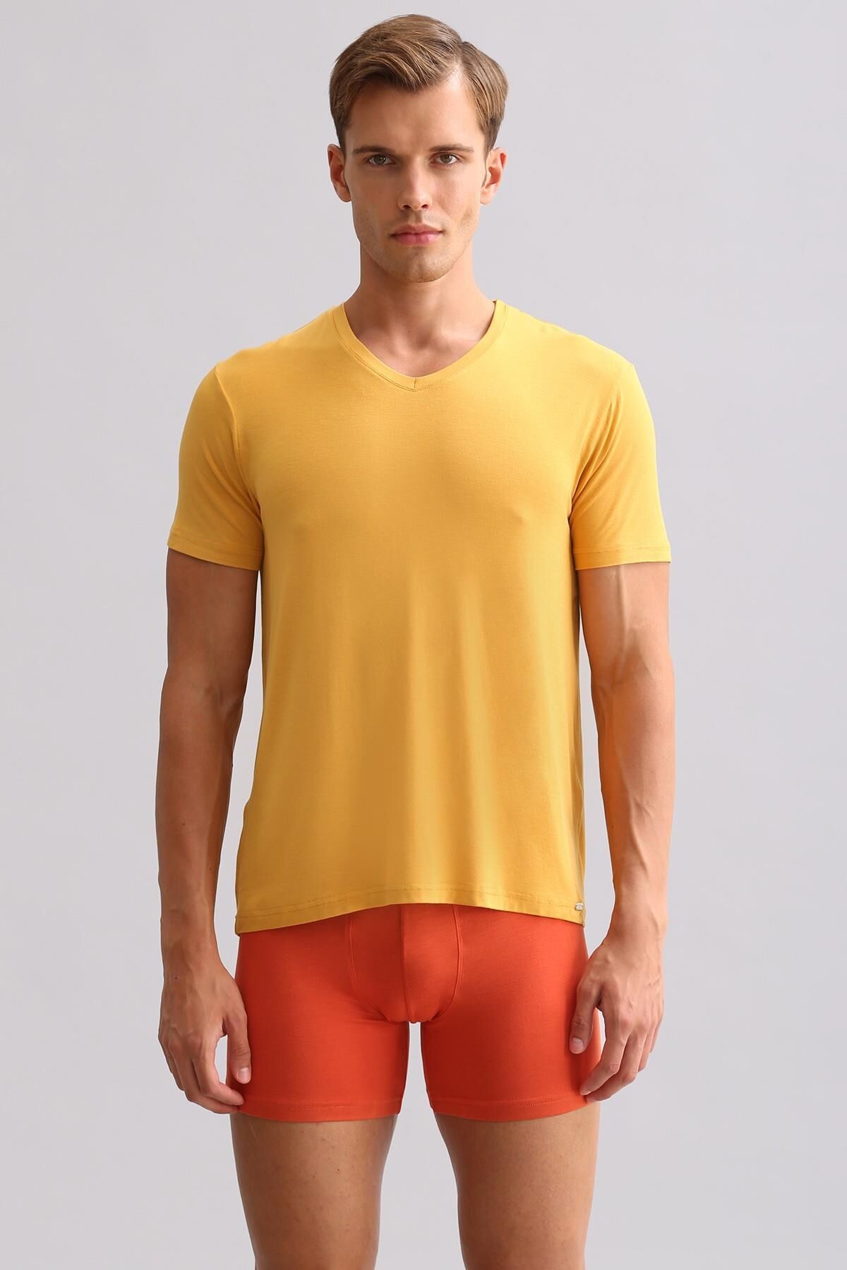 Mısırlı ORGANIC Pamuklu ZEUS LUXURY Regular Fit V Yaka Fanila / T-Shirt Hardal