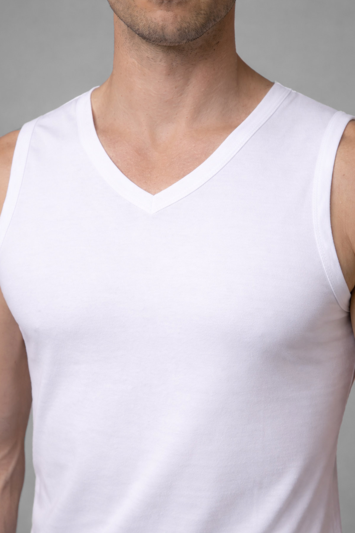 Mısırlı Pamuklu V Yaka Sıfır Kol Regular Fit Atlet Beyaz