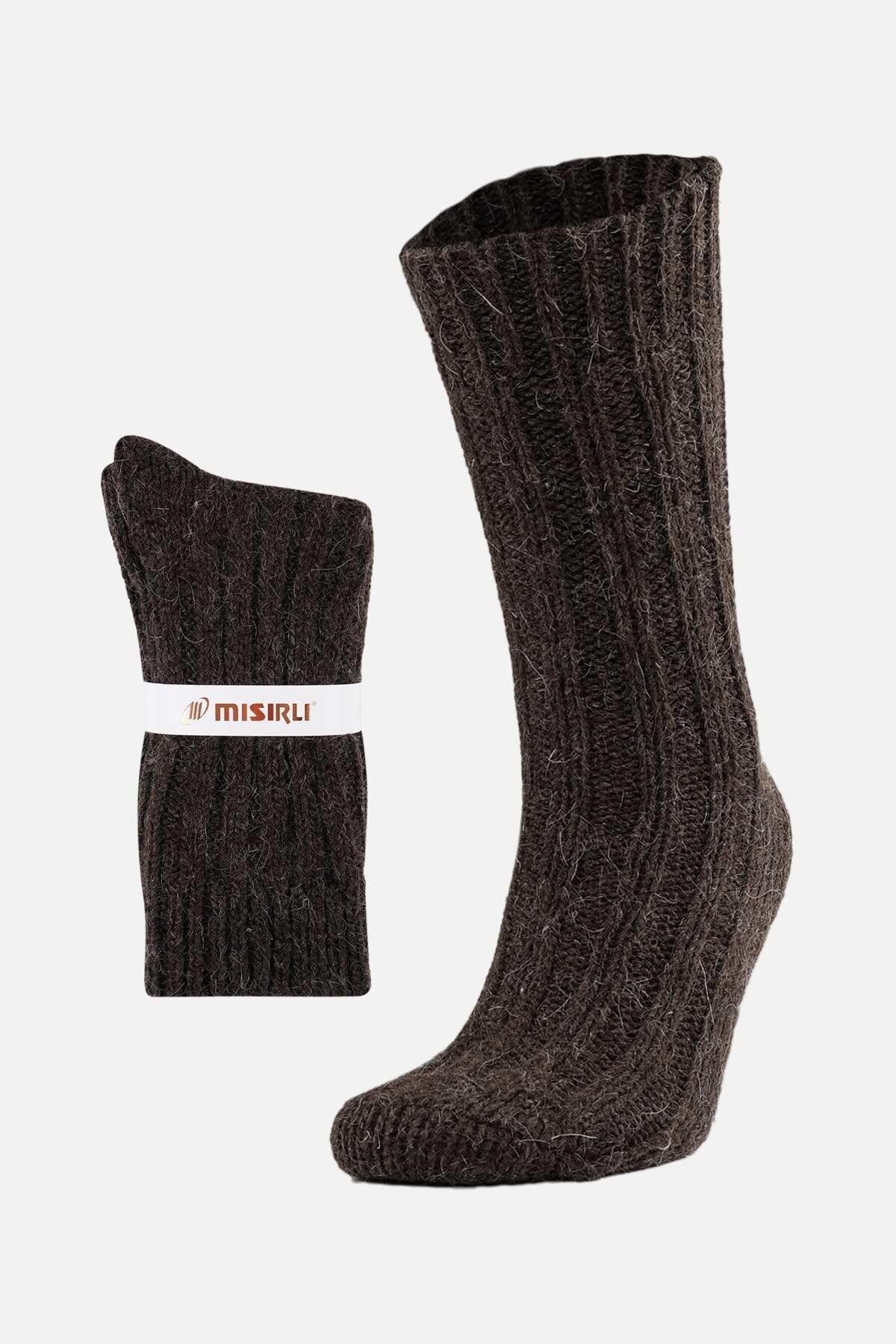 Mısırlı Unisex 5 Kat Alpaka Yünü Kışlık Tekli Soket Çorap Kahverengi