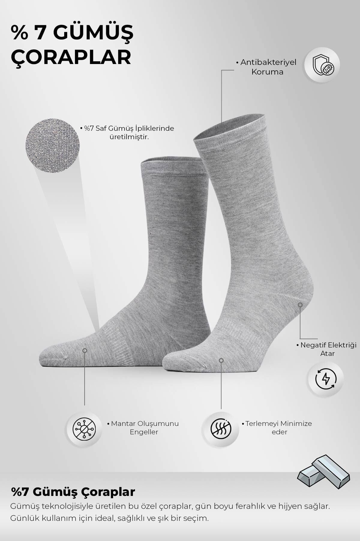 İçeriğinde bulunan %7 gümüş lif, antibakteriyel özelliği ile koku oluşumunu azaltmaya destek olur ve hijyen hissini artırır. %21 polyamid dayanıklılığı güçlendirirken, %2 elastan çorabın ayağı saran esnek formunu korumasına yardımcı olur. Unisex tasarımı sayesinde farklı ayak tiplerine uyum sağlayarak hem kadın hem erkek kullanıcılar için dengeli ve konforlu bir kullanım sunar. Böylece hem günlük kullanımda hem de aktif tempoda rahat, dengeli ve uzun ömürlü bir kullanım deneyimi sağlar.