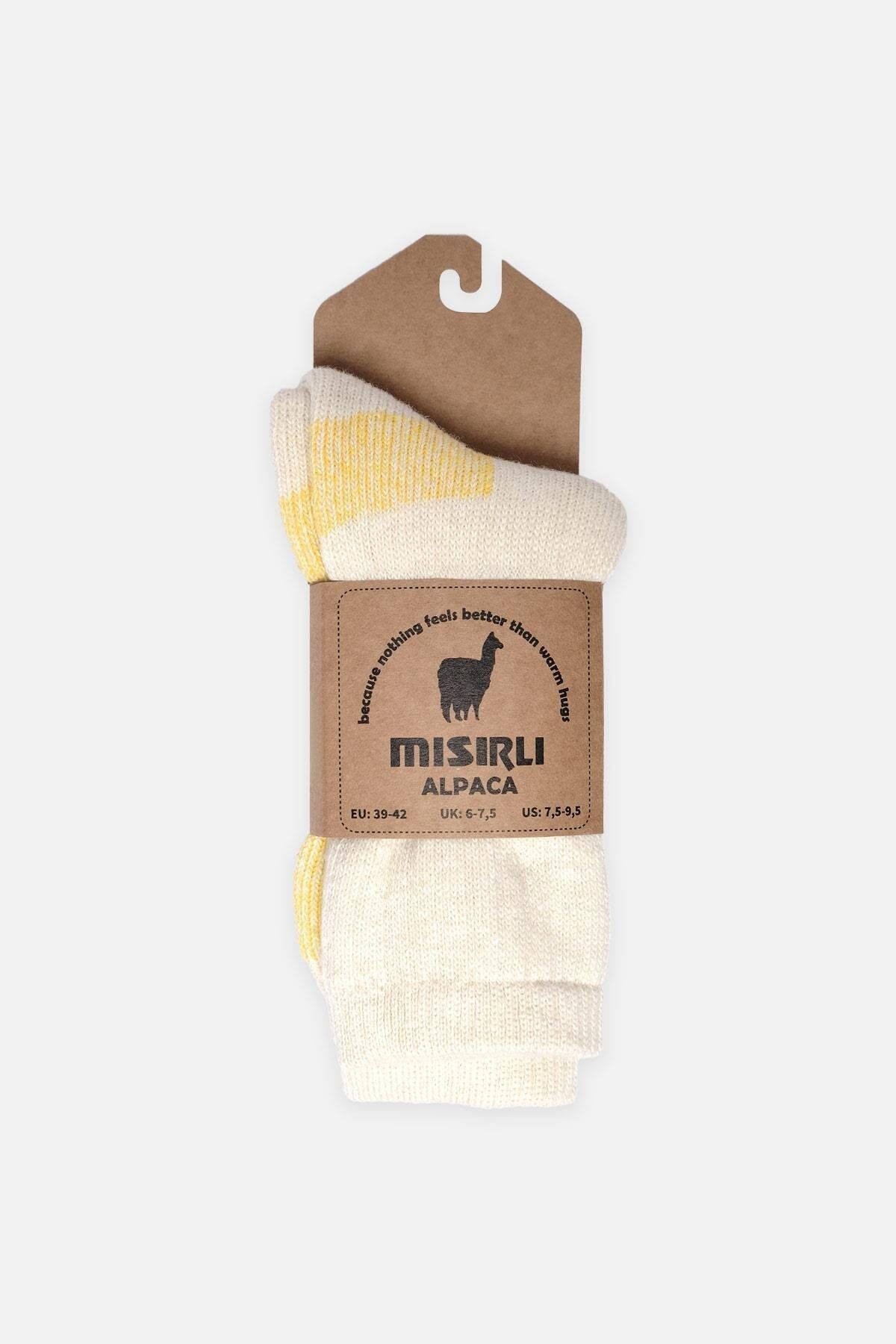 Mısırlı Unisex Alpaka Yünü Havlu Kışlık Soket Çorap Ekru/Sarı