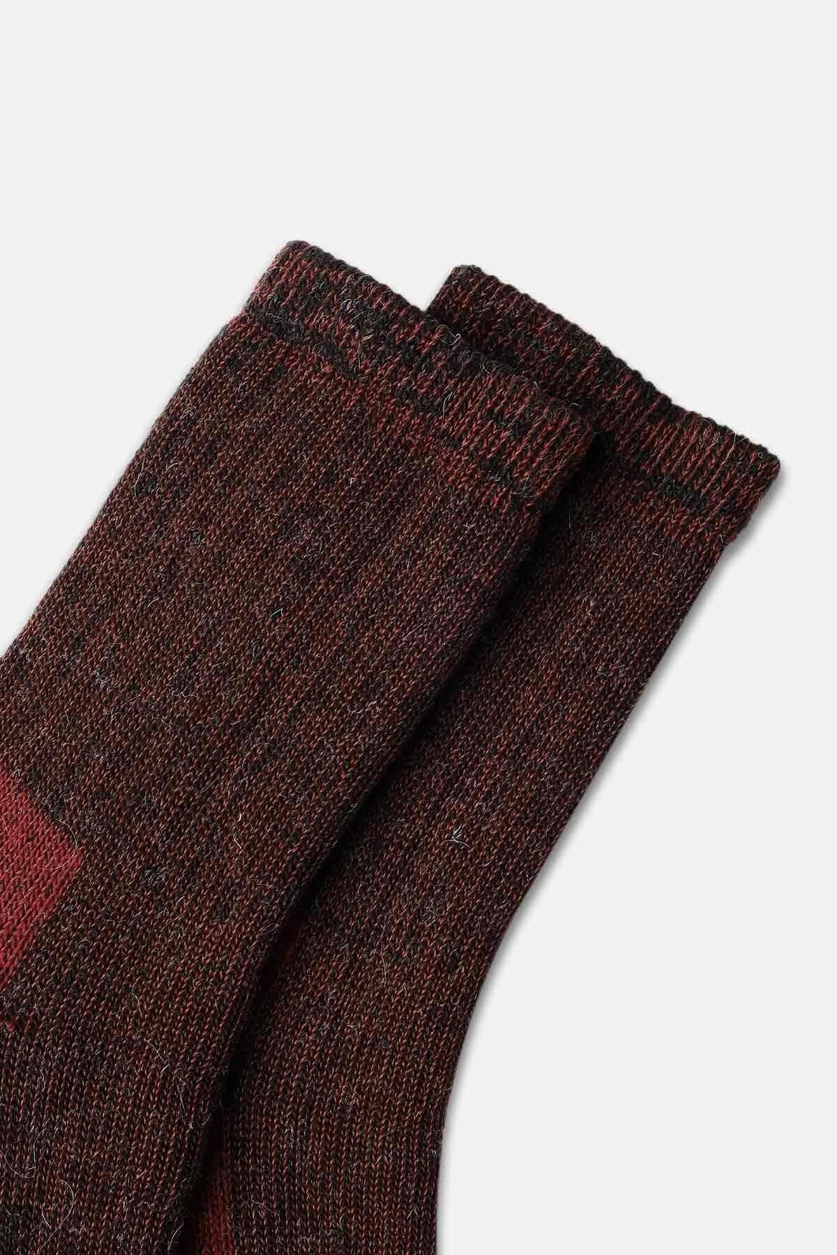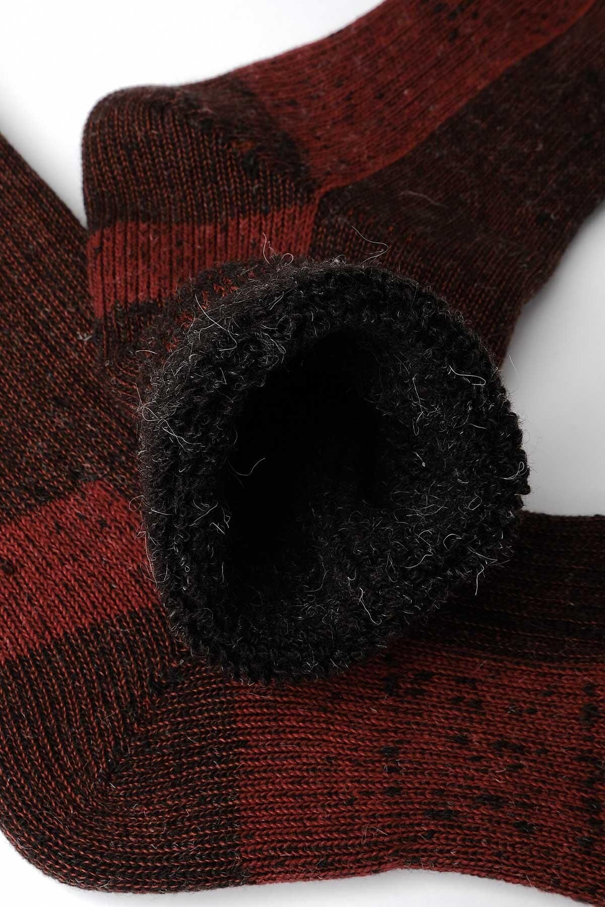 Mısırlı Unisex Alpaka Yünü Havlu Kışlık Soket Çorap Kahverengi/Kırmızı