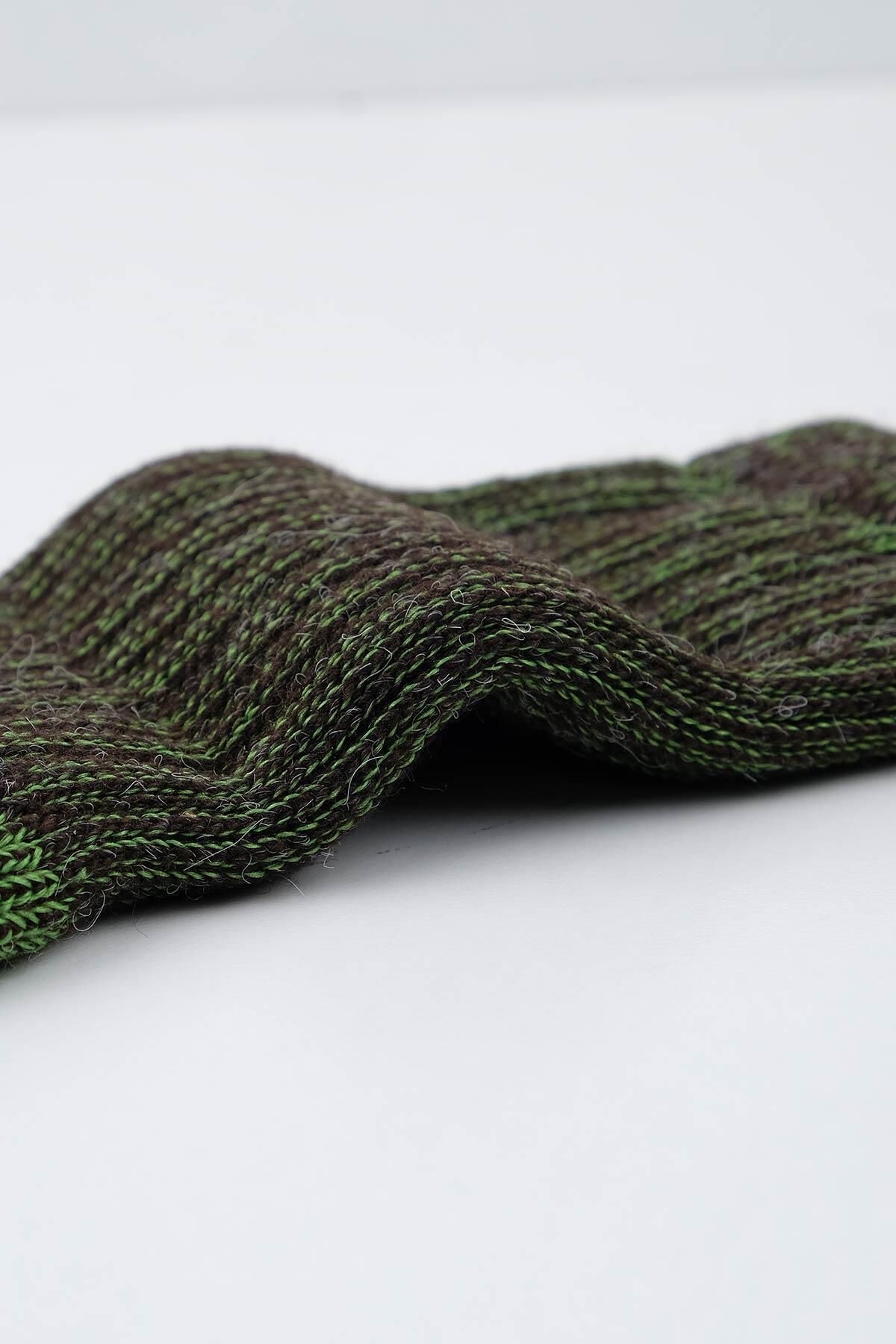 Mısırlı Unisex Alpaka Yünü Havlu Kışlık Soket Çorap Kahverengi/Yeşil