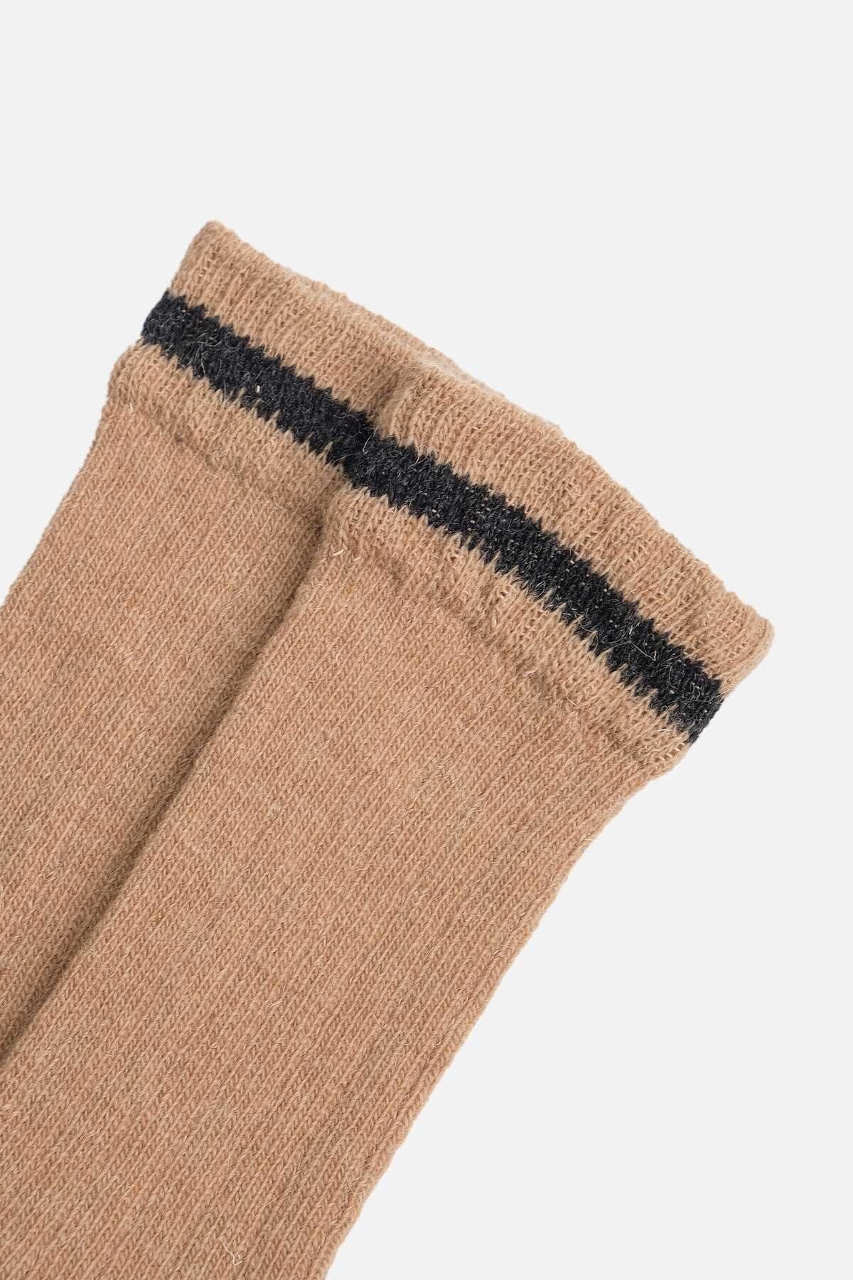 Mısırlı Unisex Alpaka Yünü Kışlık Çemberli Tekli Soket Çorap Bej