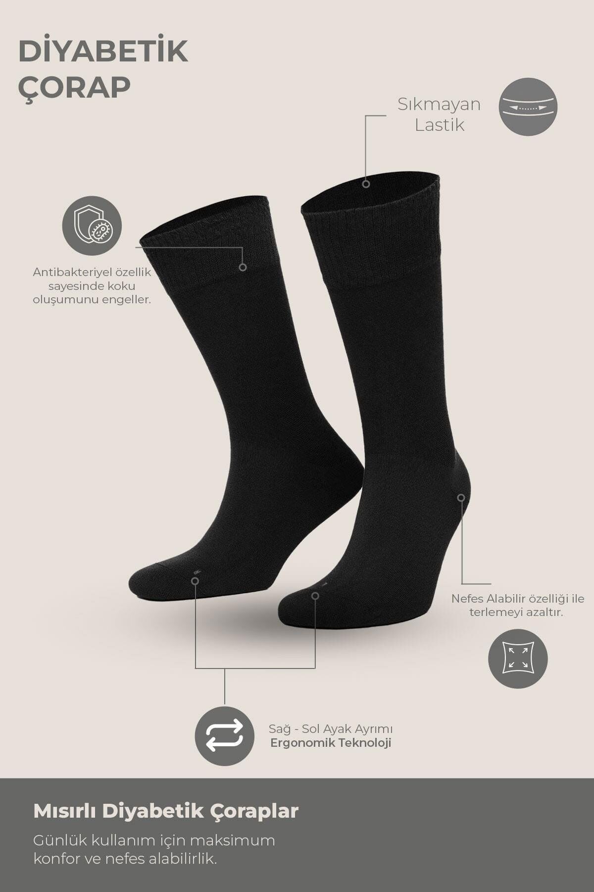 Mısırlı Unisex Bambu 6 Çift Diabetiker Lastiksiz Uzun Soket Çorap