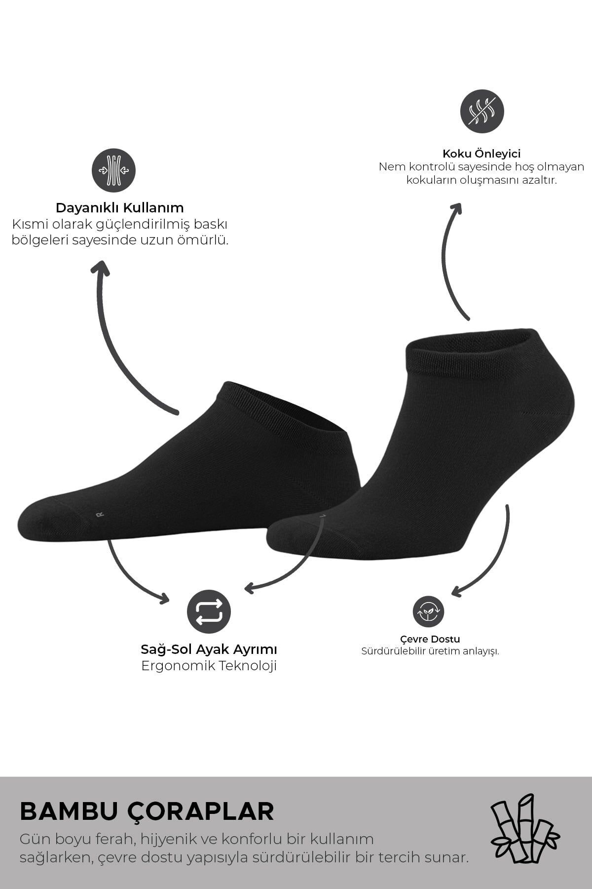 Mısırlı Unisex Bambu 7 Çift Patik Çorap Siyah