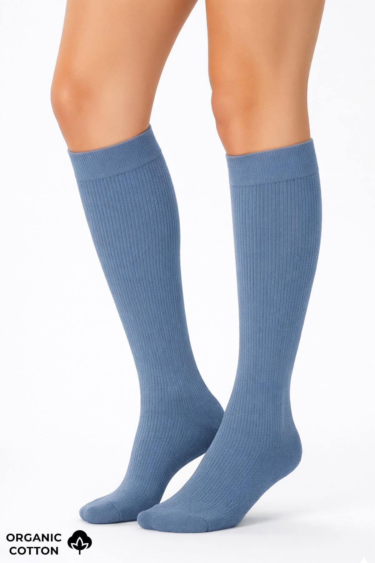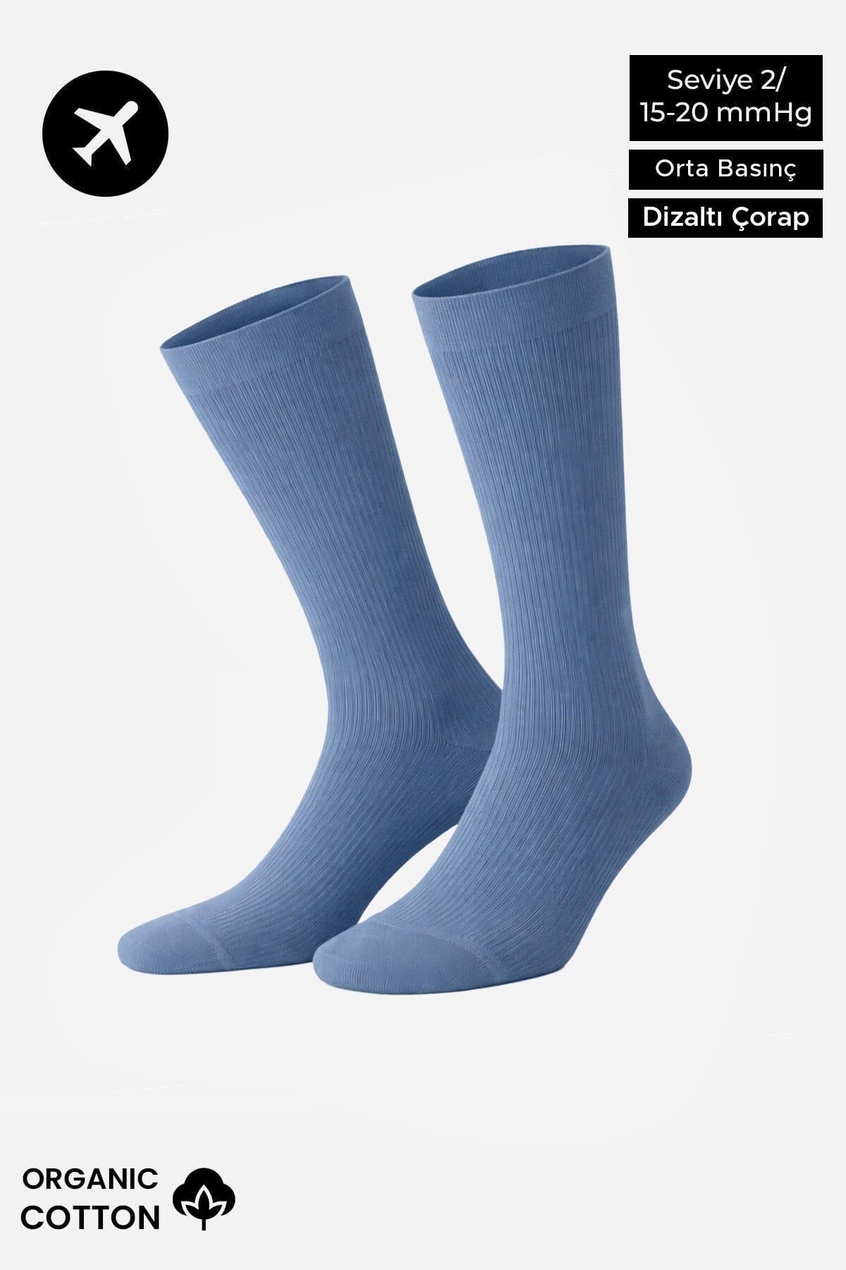 Organik Pamuklu Kompresyon Diz Altı Çorap, %70 organik pamuk, %27 poliamid ve %3 elastan karışımıyla üretilmiştir. Nefes alabilen yapısı, esnek dokusu ve destekleyici basınç teknolojisi sayesinde gün boyu konfor sunar. Özellikle uzun süreli oturma, seyahat, uçuş ve ayakta kalınan durumlarda bacakları desteklemeye yardımcı olur.