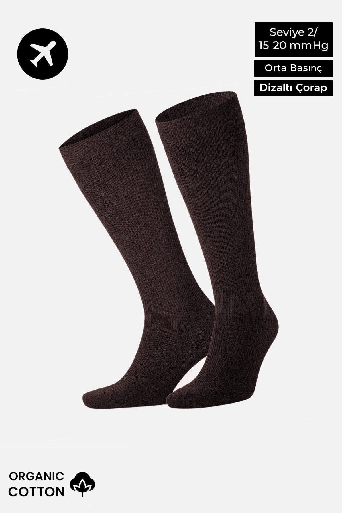 Mısırlı Unisex Organik Pamuk Özel Sıkılaştırıcı Teknolojiyle Uçuş Ve Pilot Diz Altı Çorap Kahverengi