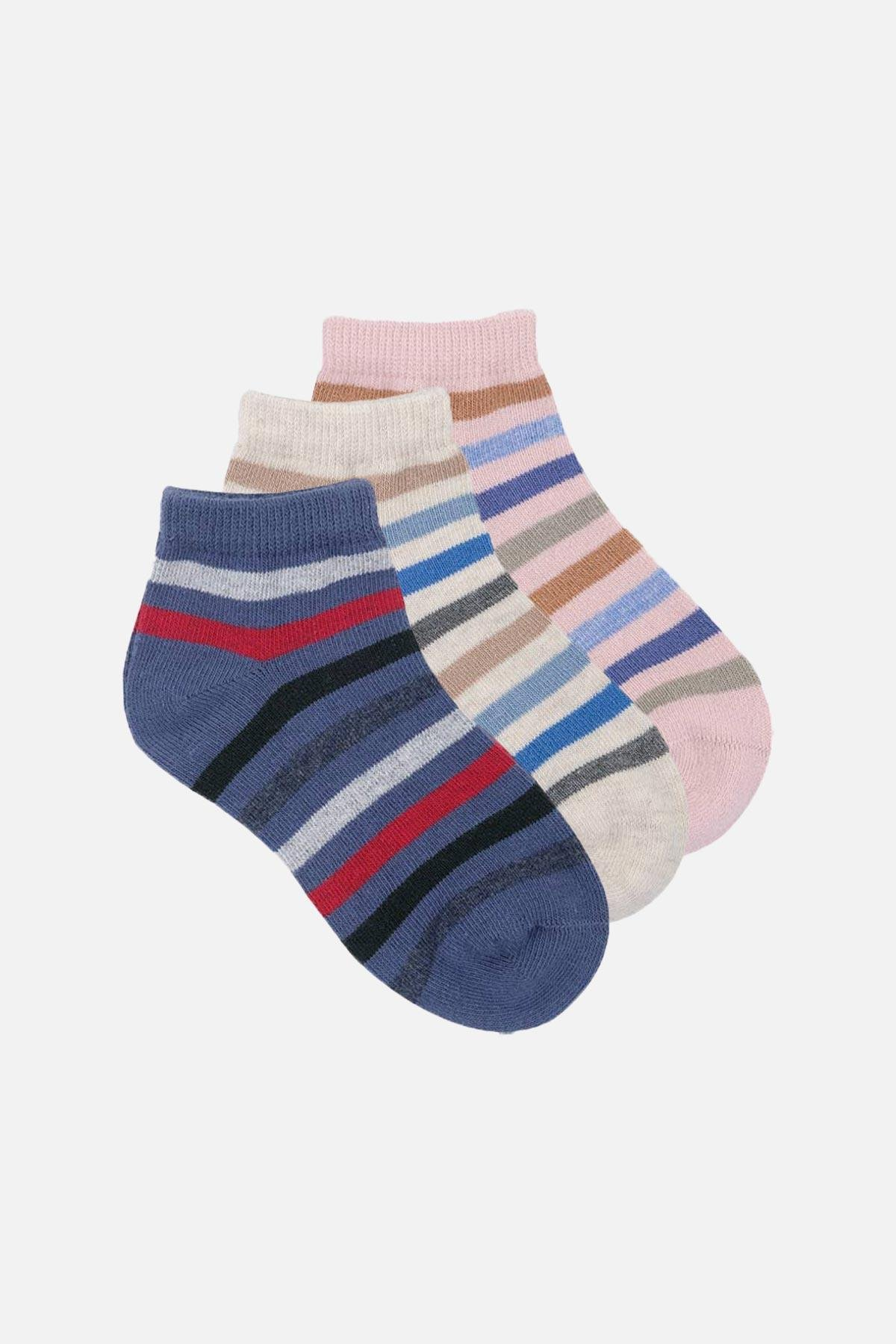 Mısırlı Unisex Pamuklu 3 Çift Çocuk Patik Çorap - M-BABY-14