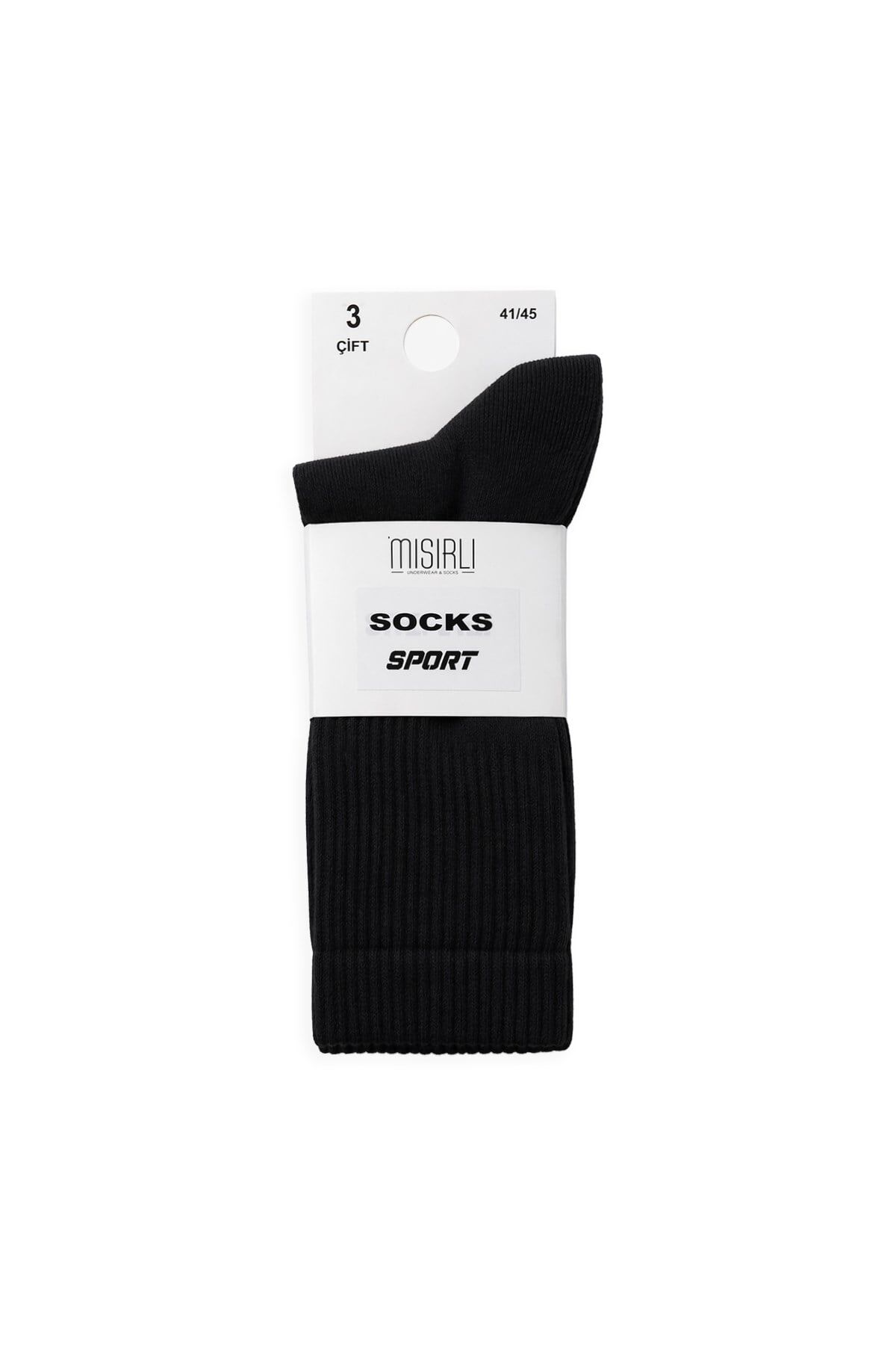 Mısırlı Unisex Pamuklu Spor Çorap, 3'Lü Siyah