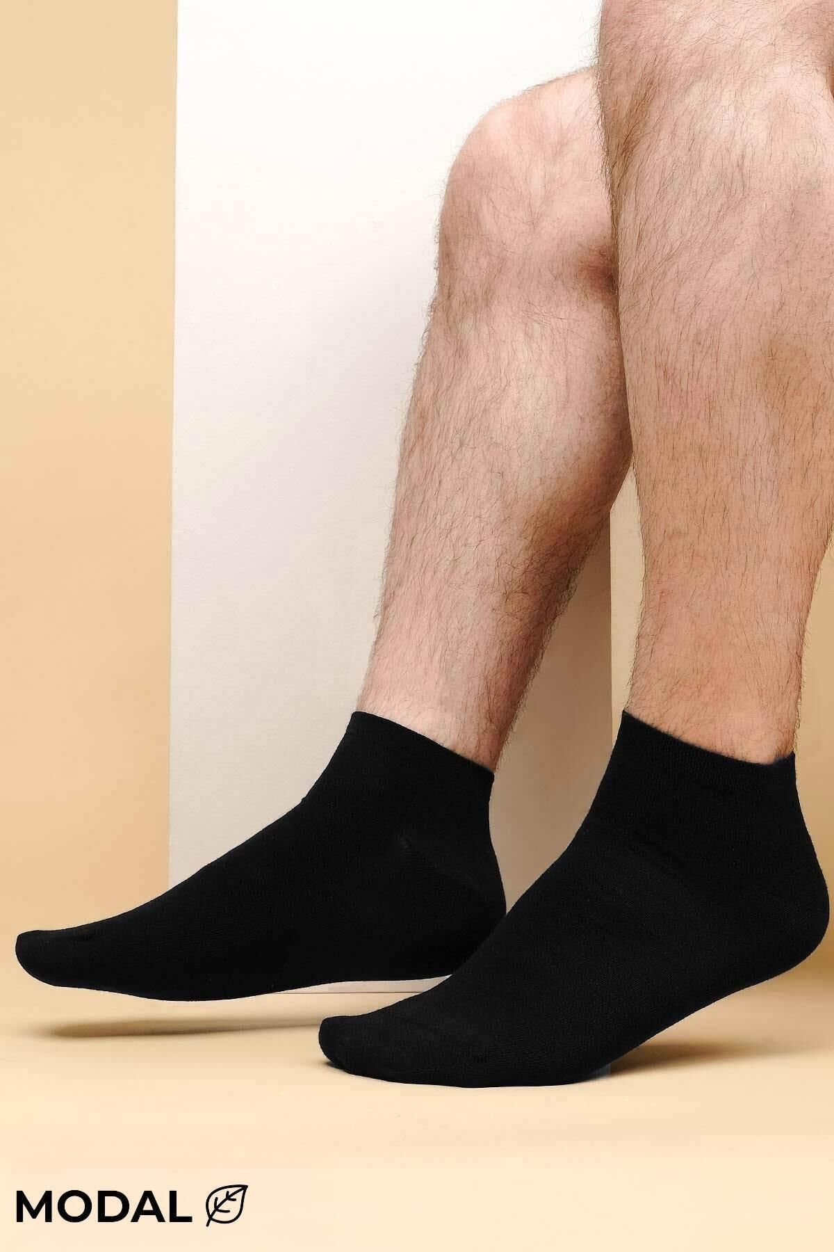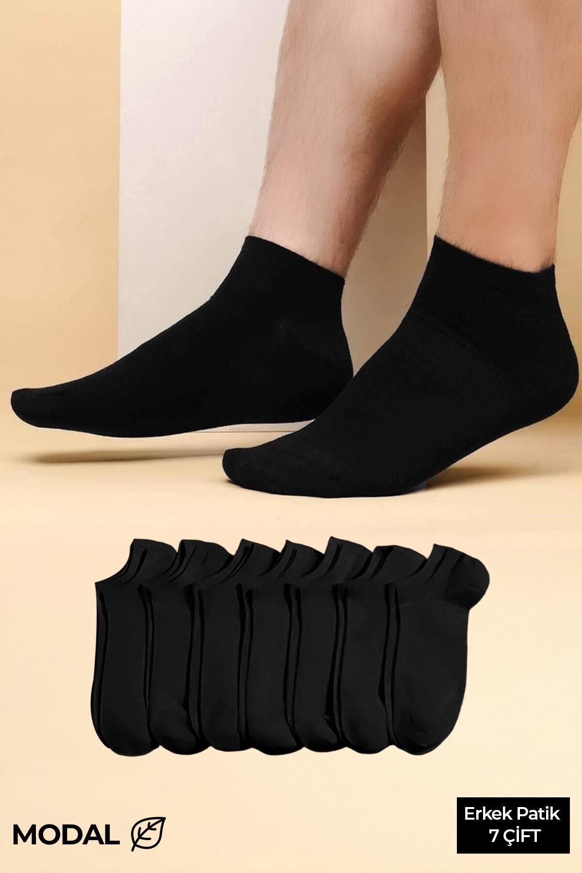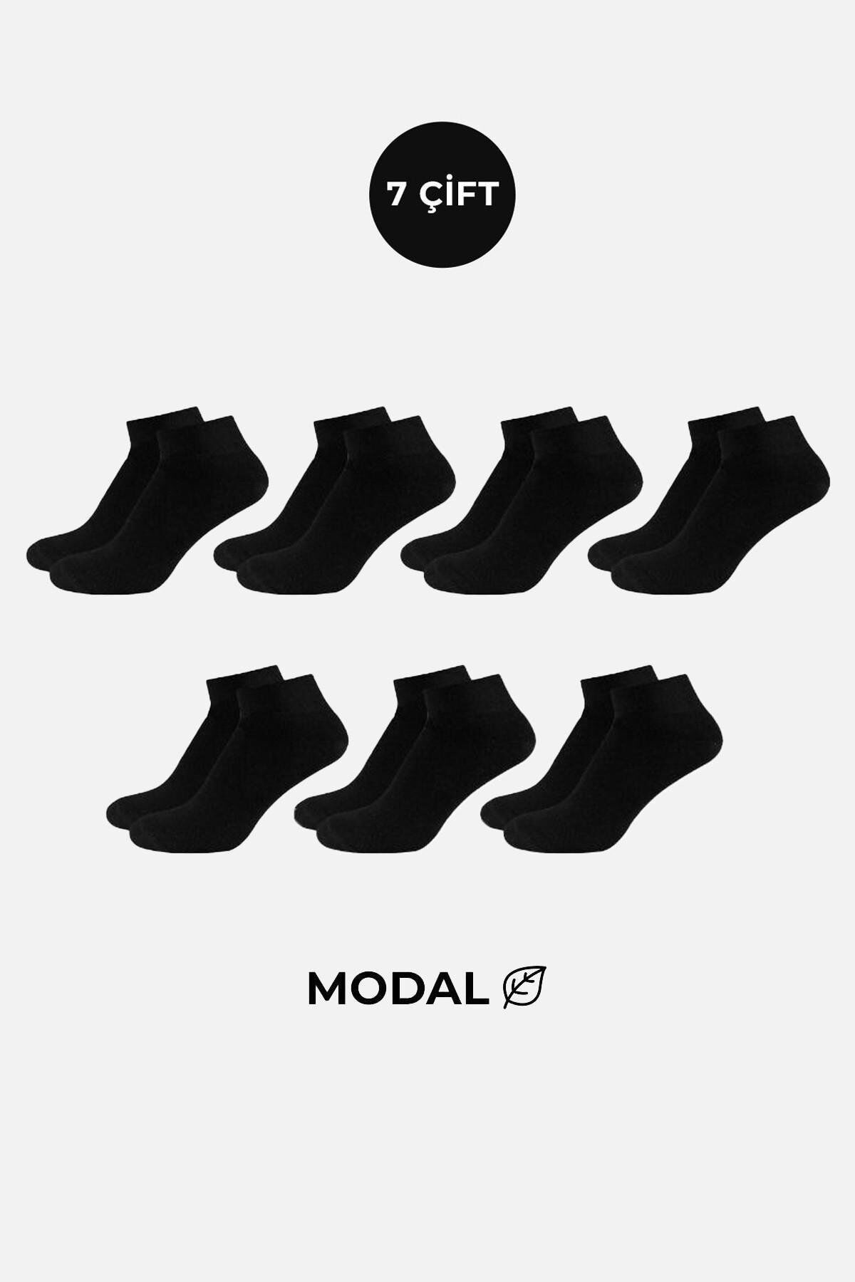 MODAL Erkek Kutulu 7 Çift Patik Çorap Siyah