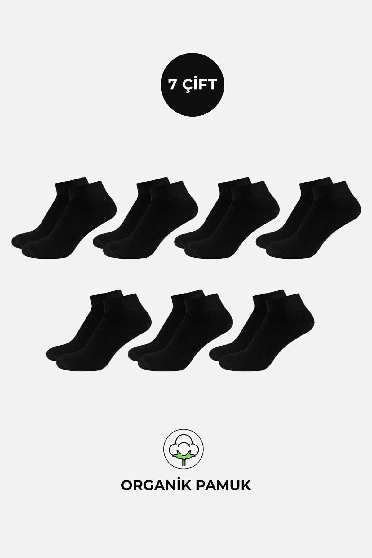 ORGANİK PAMUKLU Erkek Kutulu 7 Çift Patik Çorap Siyah