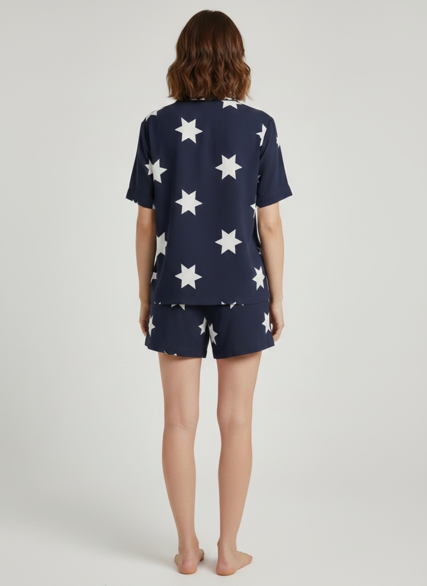 Pamuklu Kısa Kollu Gömlek Şortlu Takım Lacivert