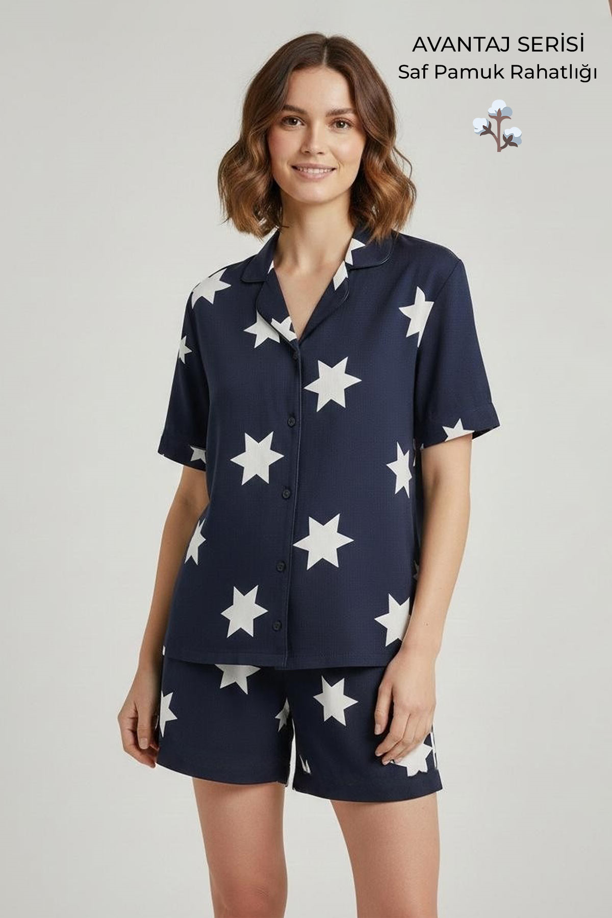 %100 pamuk (cotton) kumaştan üretilmiştir. Nefes alabilen yapısı sayesinde yaz aylarında serin ve rahat kullanım sağlar. Yumuşak ve hafif dokusu ile cilt dostudur. Kısa kollu gömlek üst tasarımı ile şık ve rahat bir görünüm sunar. Şort alt parçası hareket özgürlüğü sağlar. Terletmeyen doğal pamuk kumaş yapısına sahiptir. Günlük ev giyimi ve uyku için idealdir. Rahat kesimi sayesinde konforlu kullanım sağlar. Esnek bel lastikli şort tasarımı rahat kullanım sunar. Yaz mevsimi için ideal hafif pijama takımıdır. Dayanıklı kumaşı sayesinde uzun süre kullanılabilir.