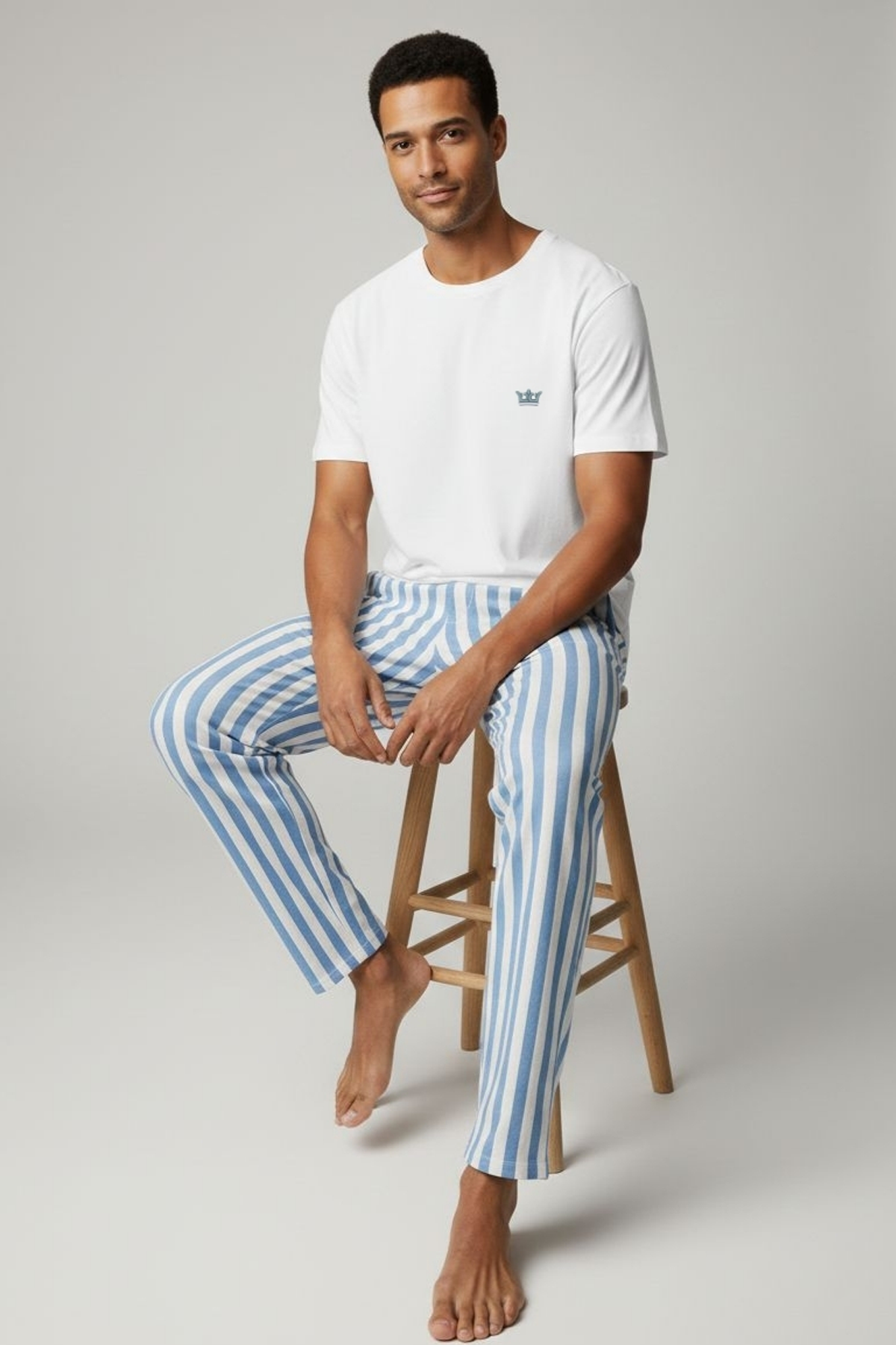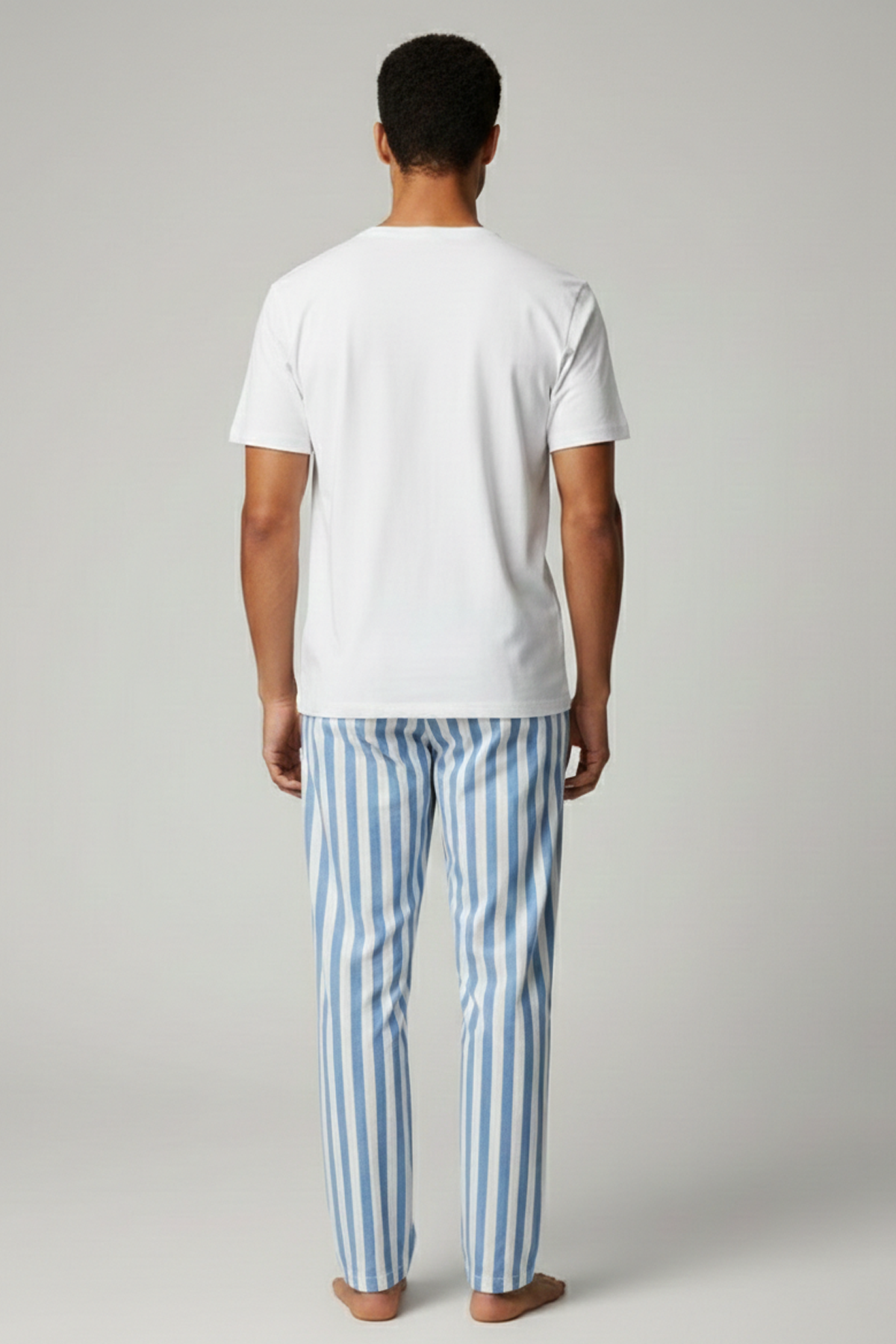 Pamuklu Kısa Kollu Pijama Takım Beyaz-Mavi