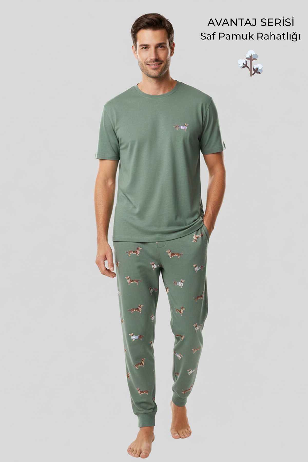 Pamuklu Kısa Kollu Pijama Takım Çağla Yeşili