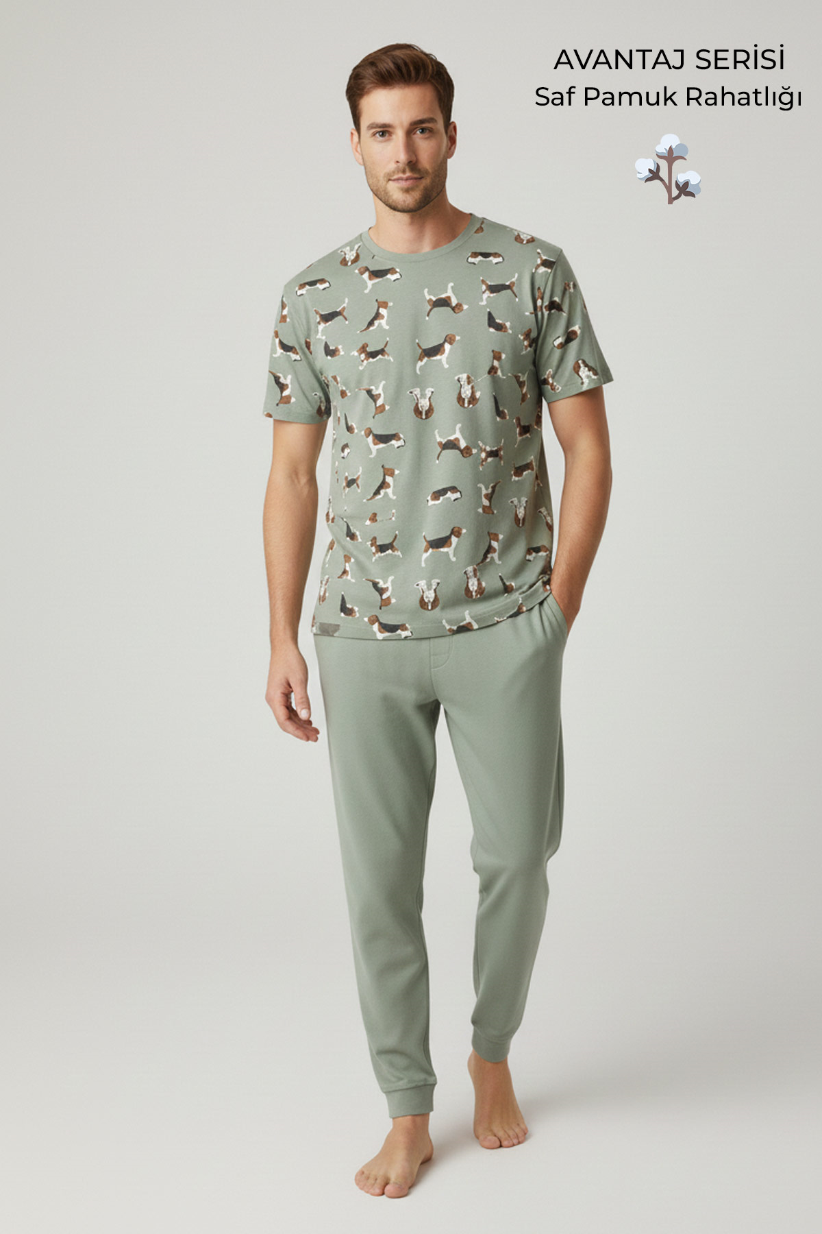 Pamuklu Kısa Kollu Pijama Takım Çağla Yeşili