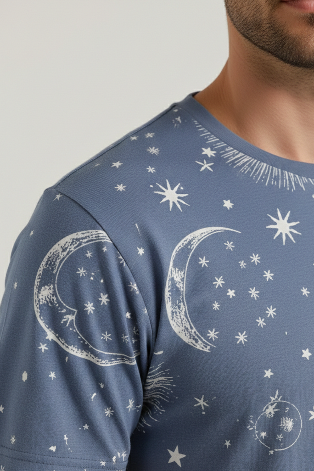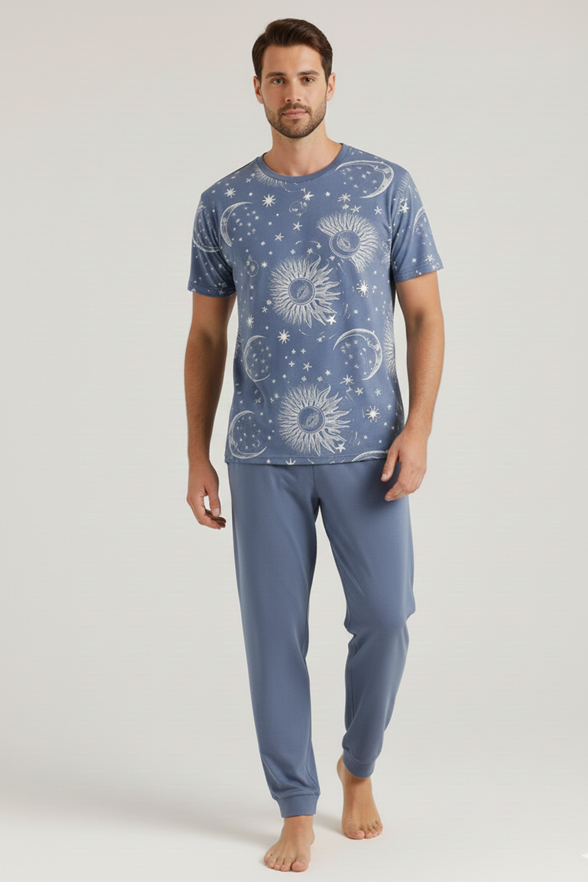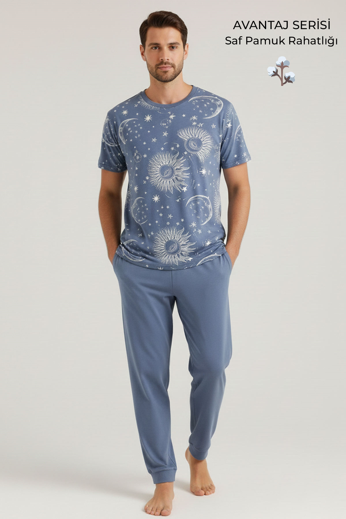 Pamuklu Kısa Kollu Pijama Takım İndigo