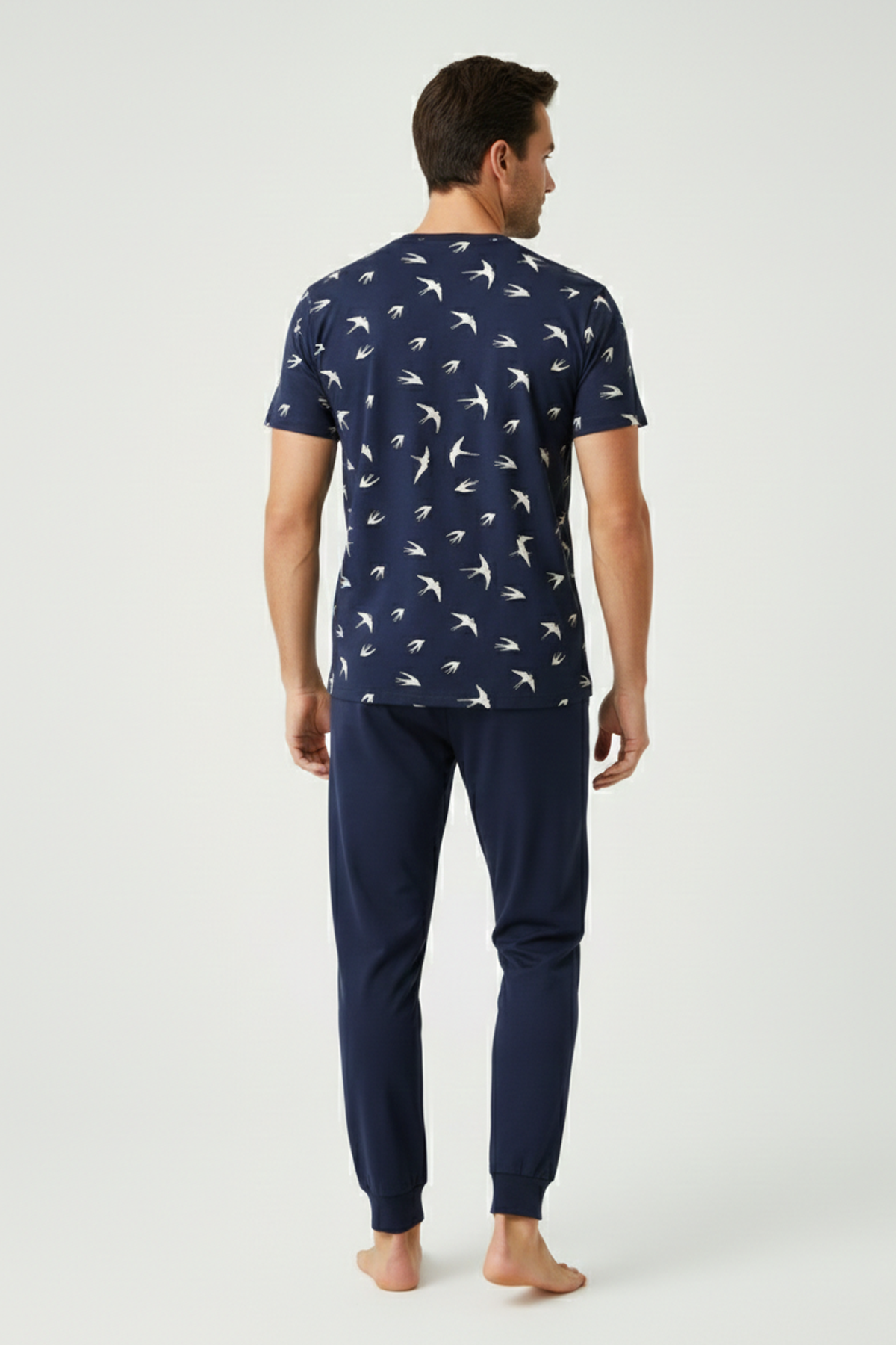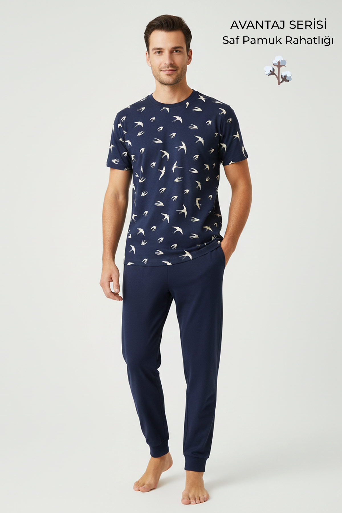 Pamuklu Kısa Kollu Pijama Takım Lacivert