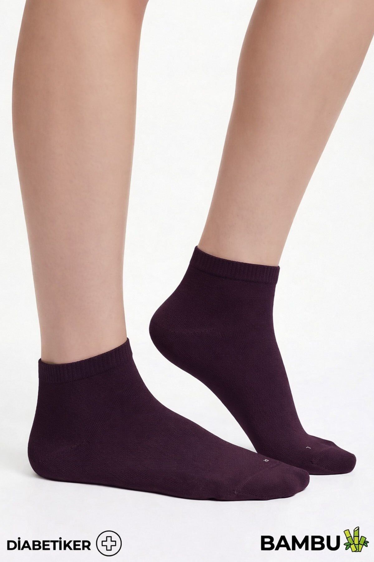 Unisex Bambu Diyabetik Sneaker Çorap Mor