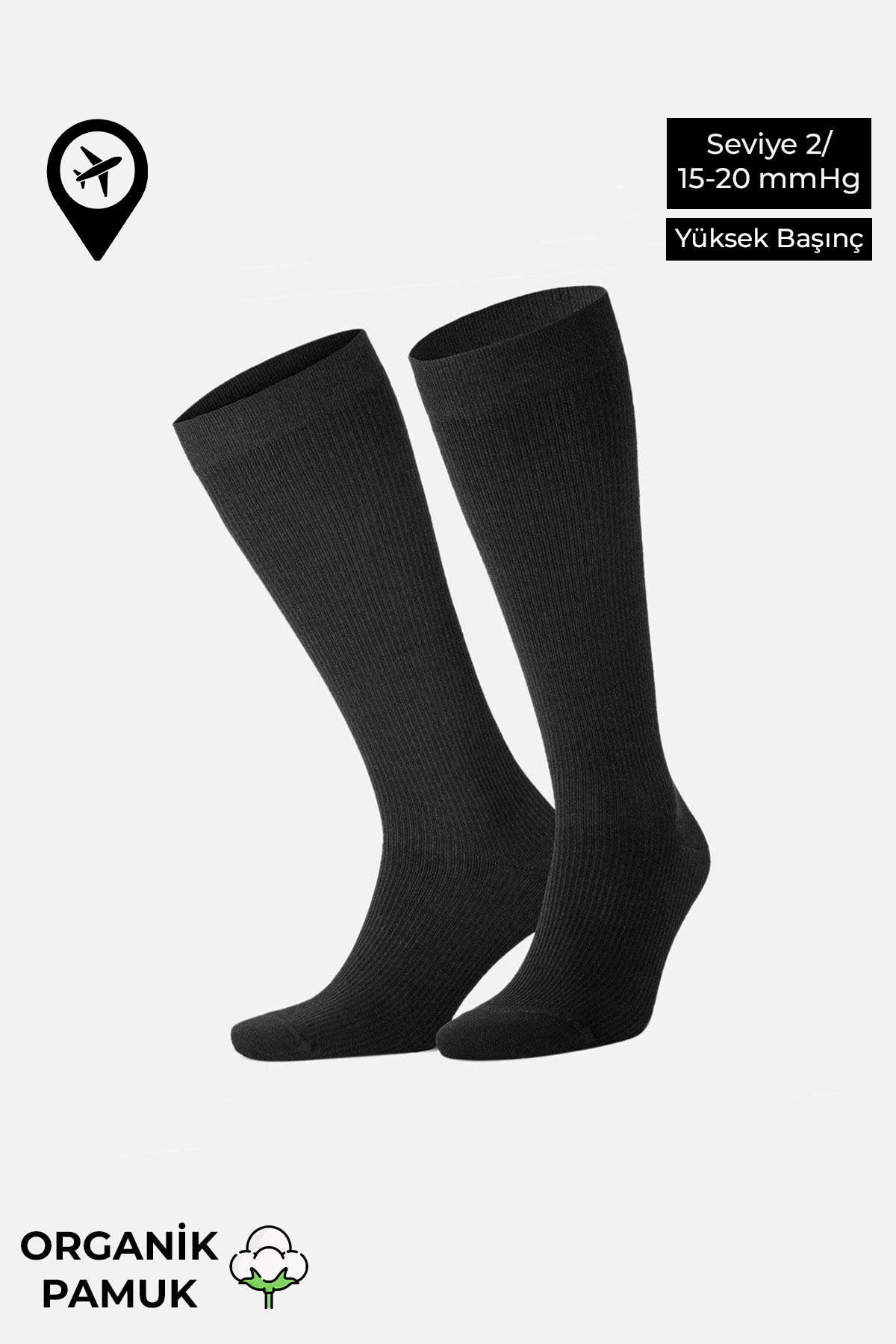 Unisex Organik Pamuklu Özel Sıkılaştırıcı Teknolojiyle Pilot Çorabı Siyah