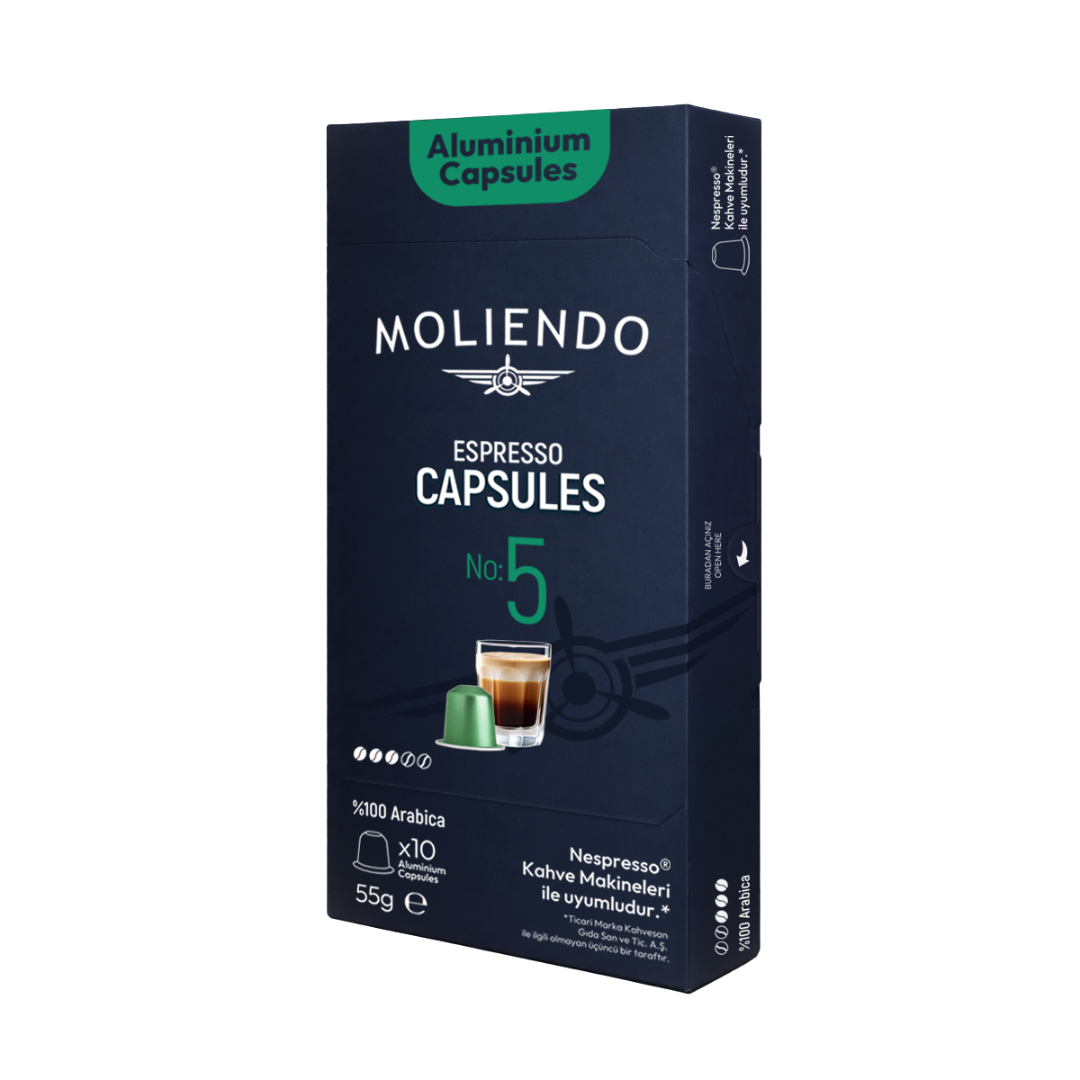Günün herhangi bir anında, fazla sertlik olmadan keyifle içilebilecek dengeli bir kahve arayanlar için Moliendo Kapsül No:5 iyi bir seçenek. Afrika ve Asya kökenli seçkin çekirdeklerle hazırlanan bu harman; topraksı ve hafif tütsülü karakterini, damakta beliren yumuşak karamel notalarıyla tamamlıyor. Ne keskin ne baskın; pürüzsüz, dengeli ve zarif bir içim sunuyor.