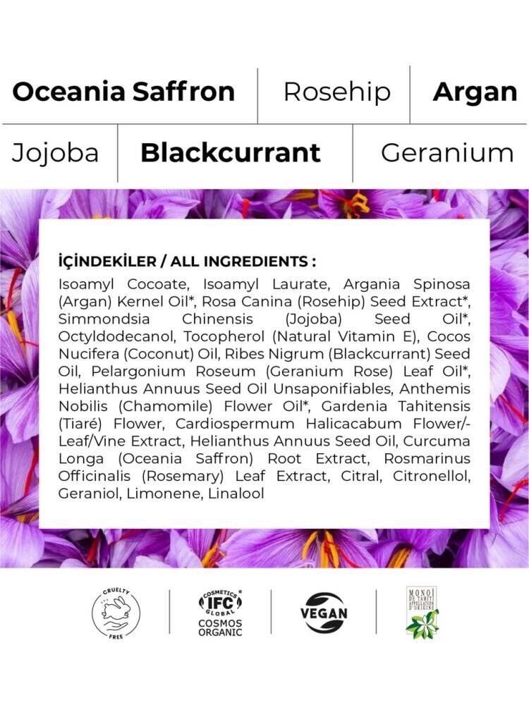 Saffron Yaşlanma Karşıtı Organik Yüz Bakım Yağı - Anti Aging Kolajen Yapısı Güçlendirici Serum 30 ml
