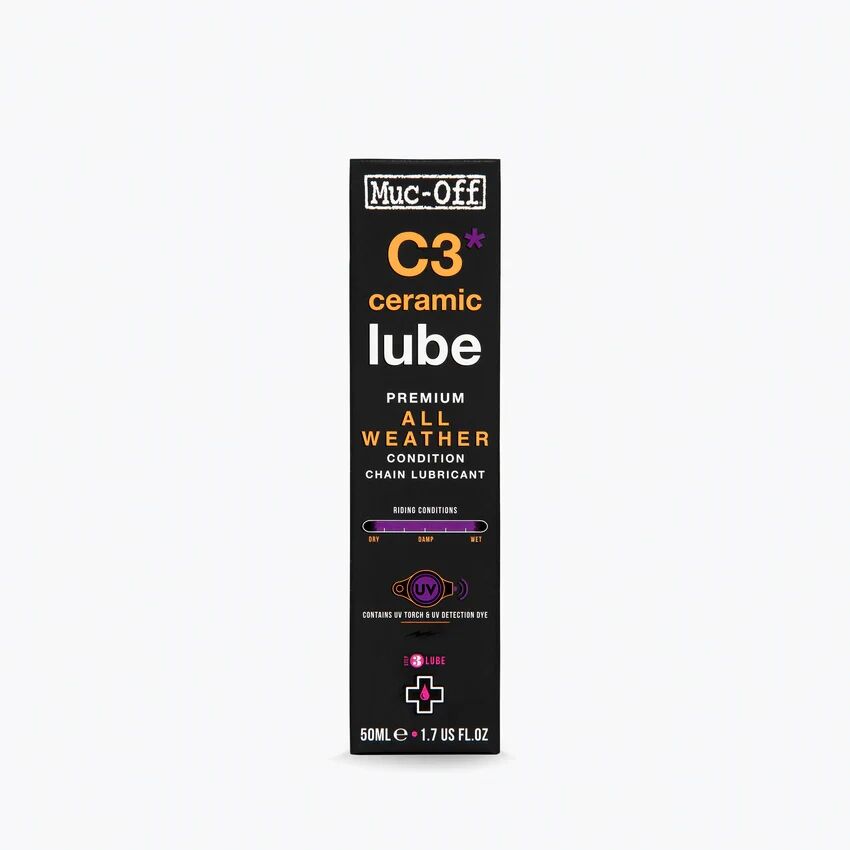 Ürün içeriği: 50 ml Muc-Off C3 Ceramic Allweather Zincir Yağı. Görseller temsilidir. Tüm hava koşullarında (kuru, nemli, yağmur, çamur) kullanılabilir. UV fener ayrıca satılır. En iyi sonuç için uygulama öncesi zinciri tamamen yağdan arındırın.