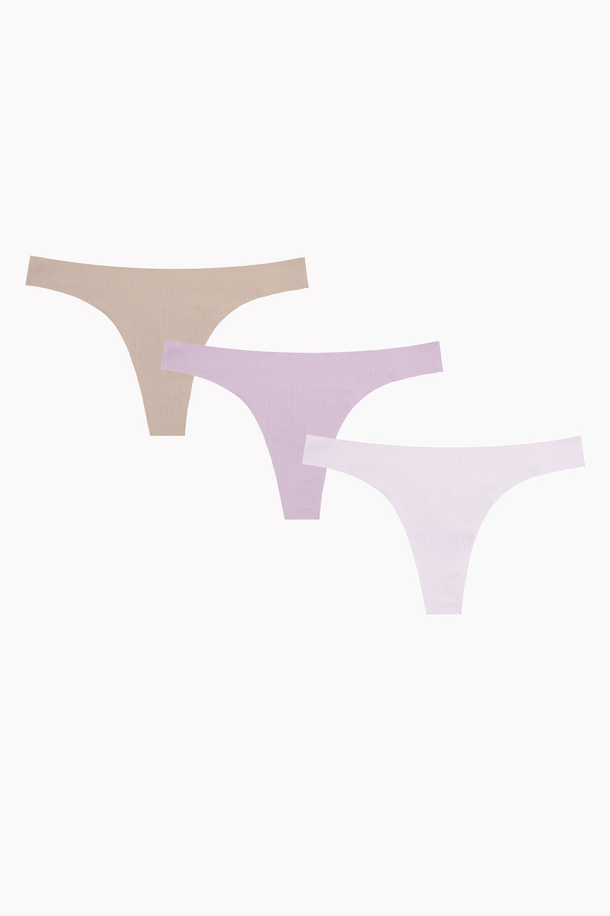 Açık Pembe Gül Kurusu Açık Kahve 3lü Lazer Kesim İz YapmazTanga