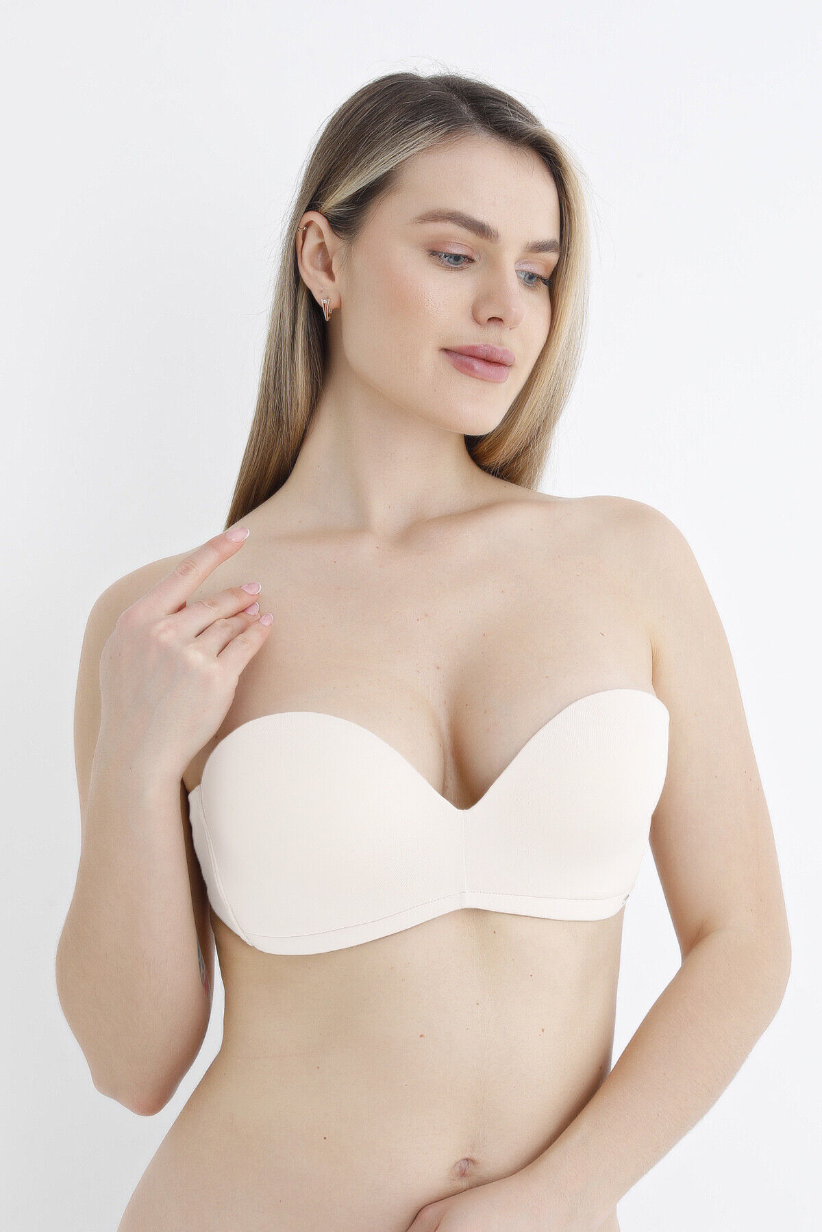 Ekru Askısız Straplez Destekli Sütyen