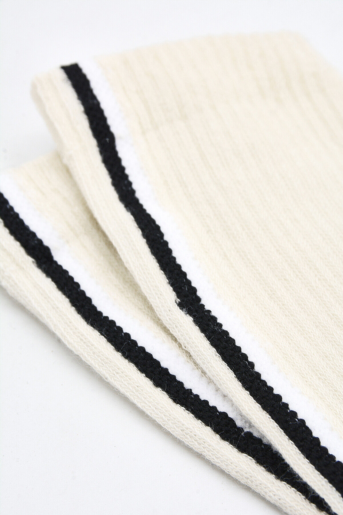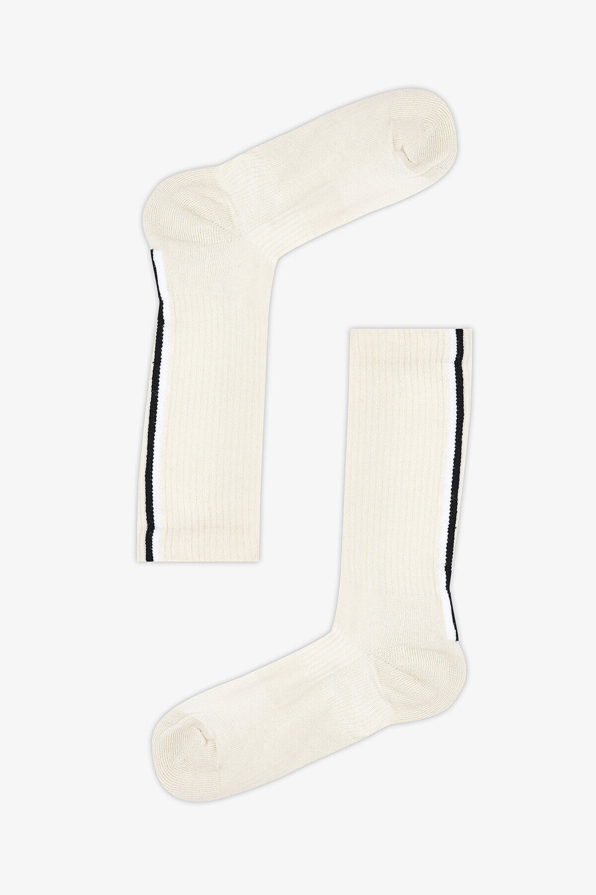 Ekru Çizgili Soket Çorap