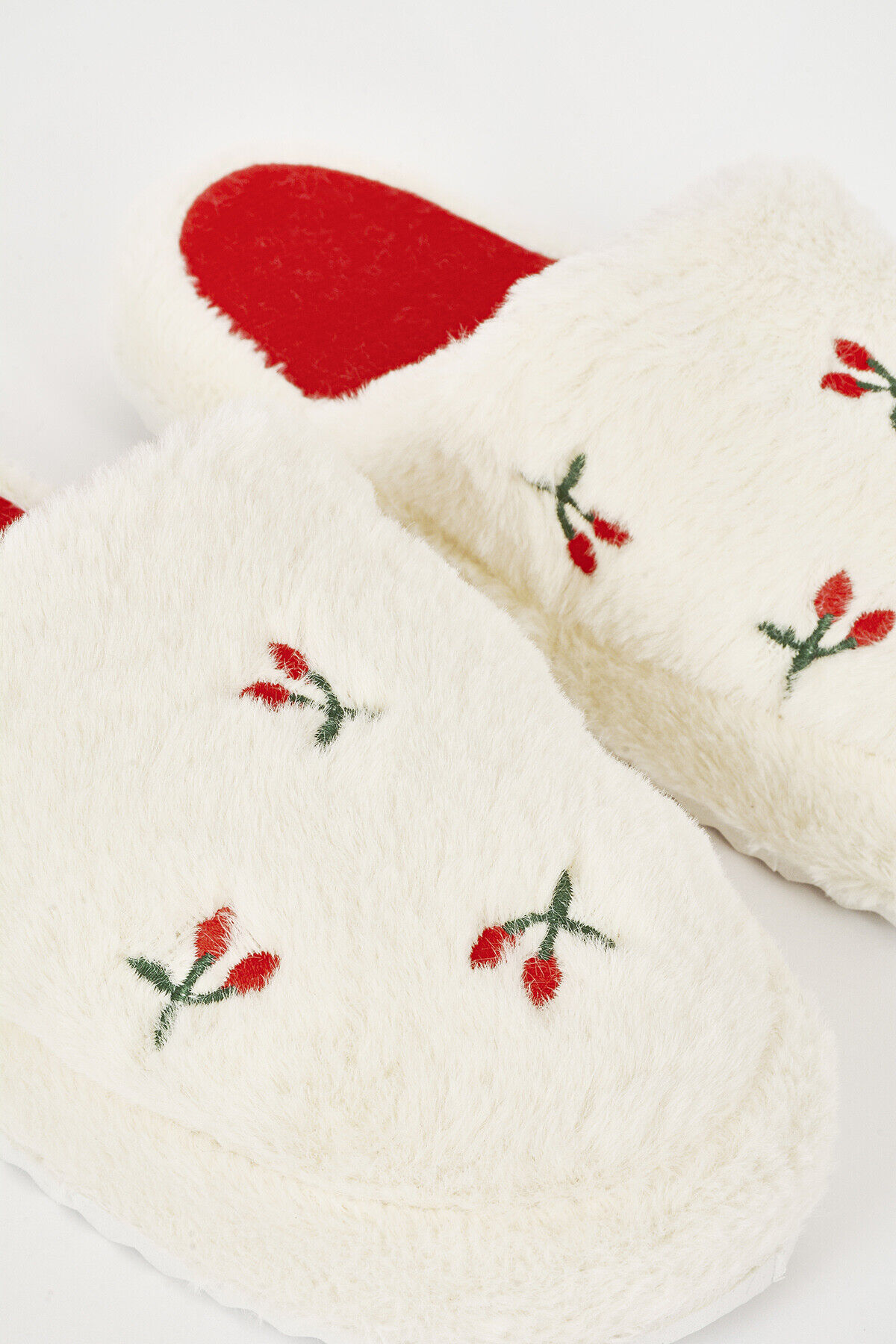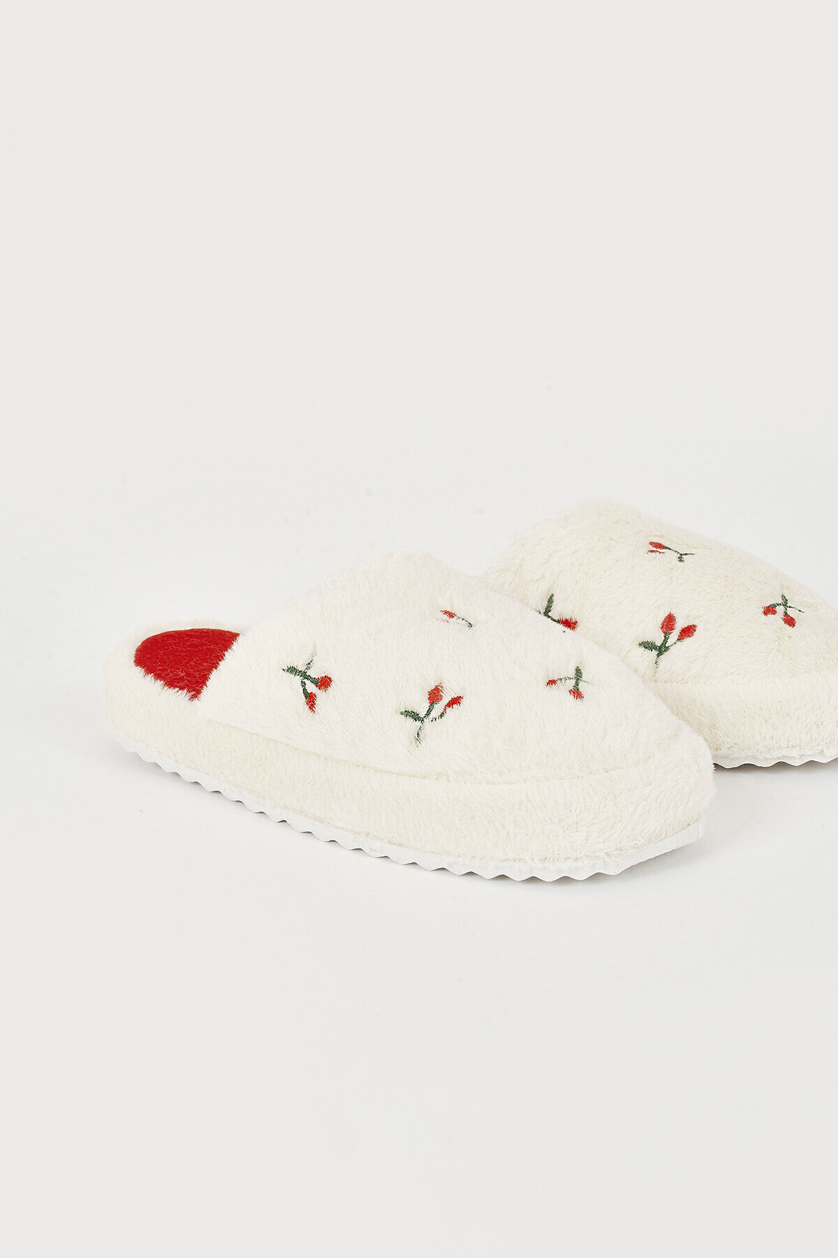 Ekru Kiraz Desenli Ev Terliği