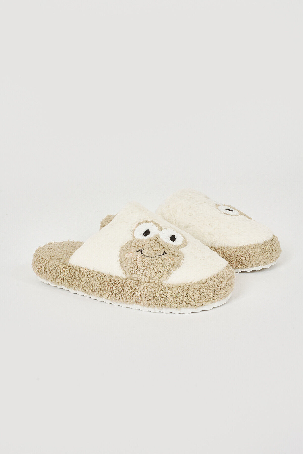 Ekru-Vizon Kurbağa Ev Terliği