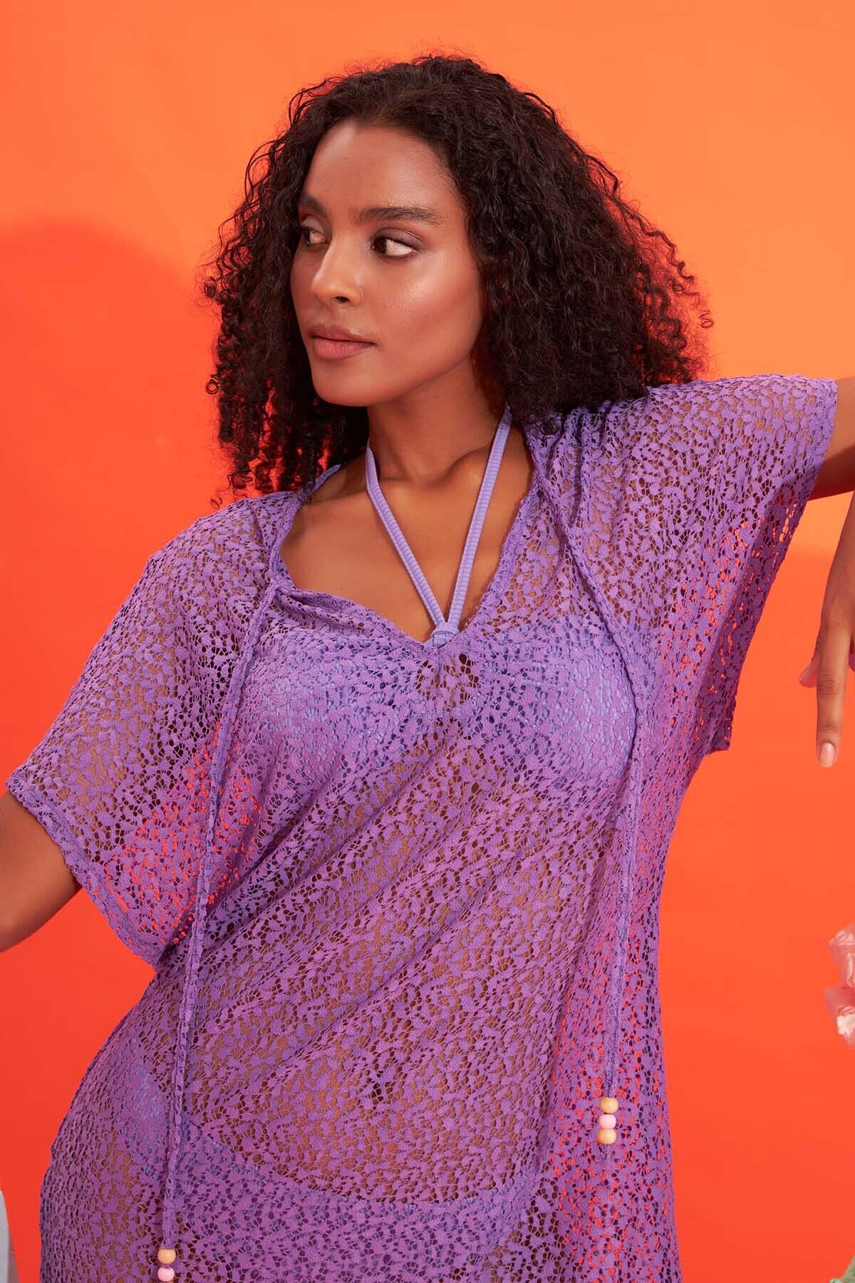NBB Lila Dantelli Elbise Pareo