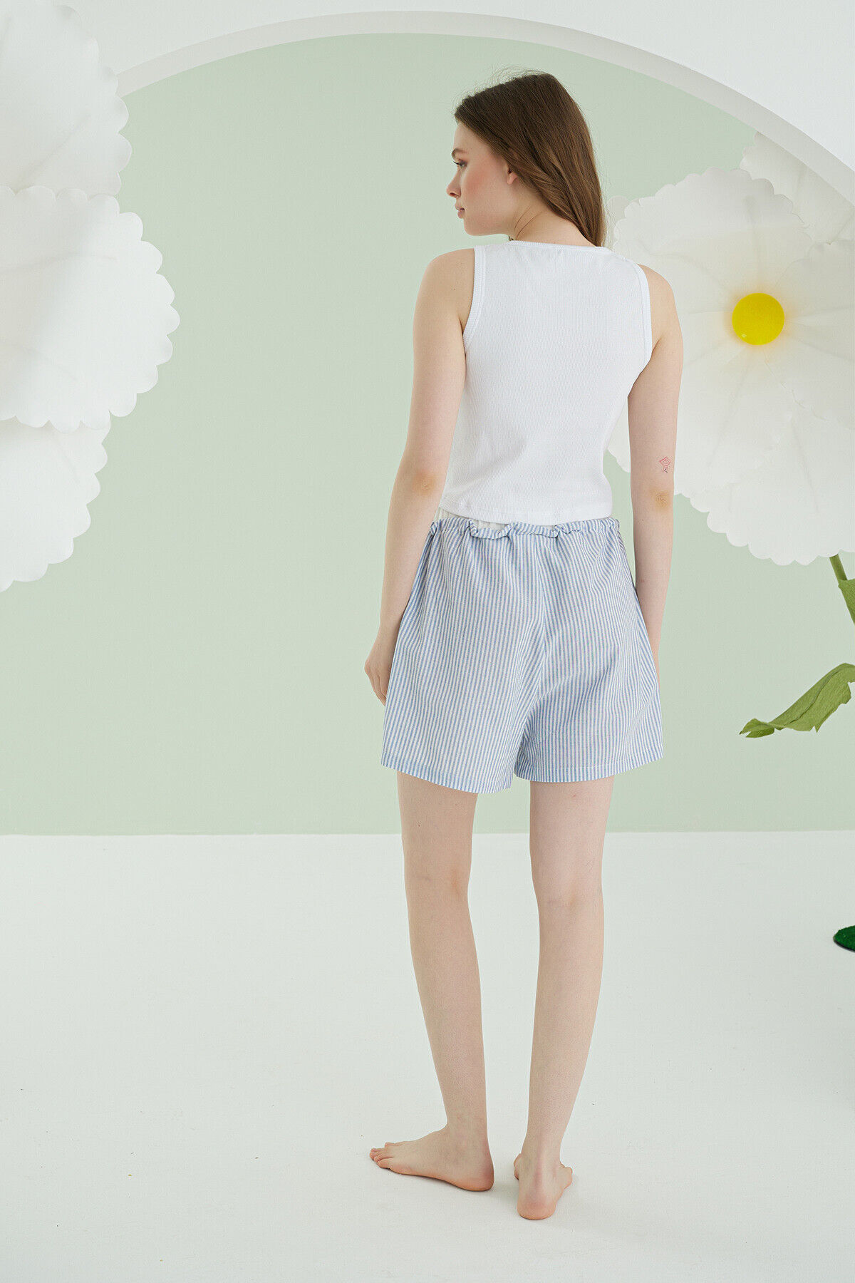 Bu NBB mavi kurdele crop şort takımı, şıklığı ve rahatlığı bir araya getiriyor. Pamuklu kumaşıyla gün boyu konfor sunarken, özel tasarımıyla da tarzınızı ortaya koymanıza yardımcı olacak.