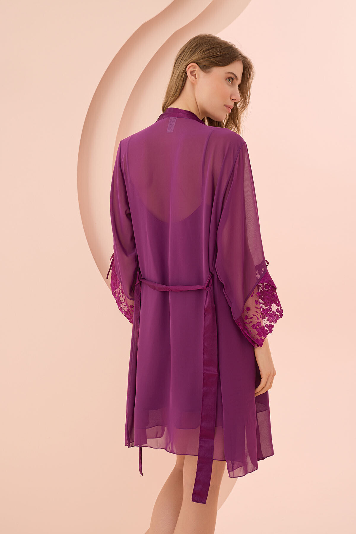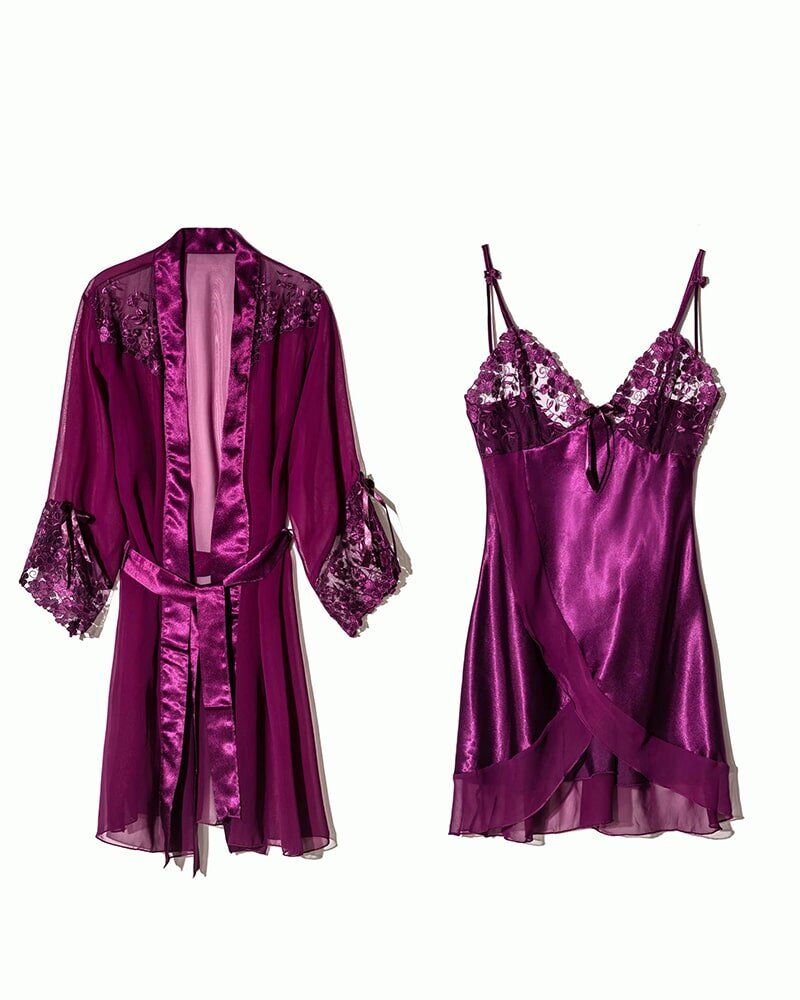NBB Mor Fantezi Saten Gecelik Sabahlık Takım