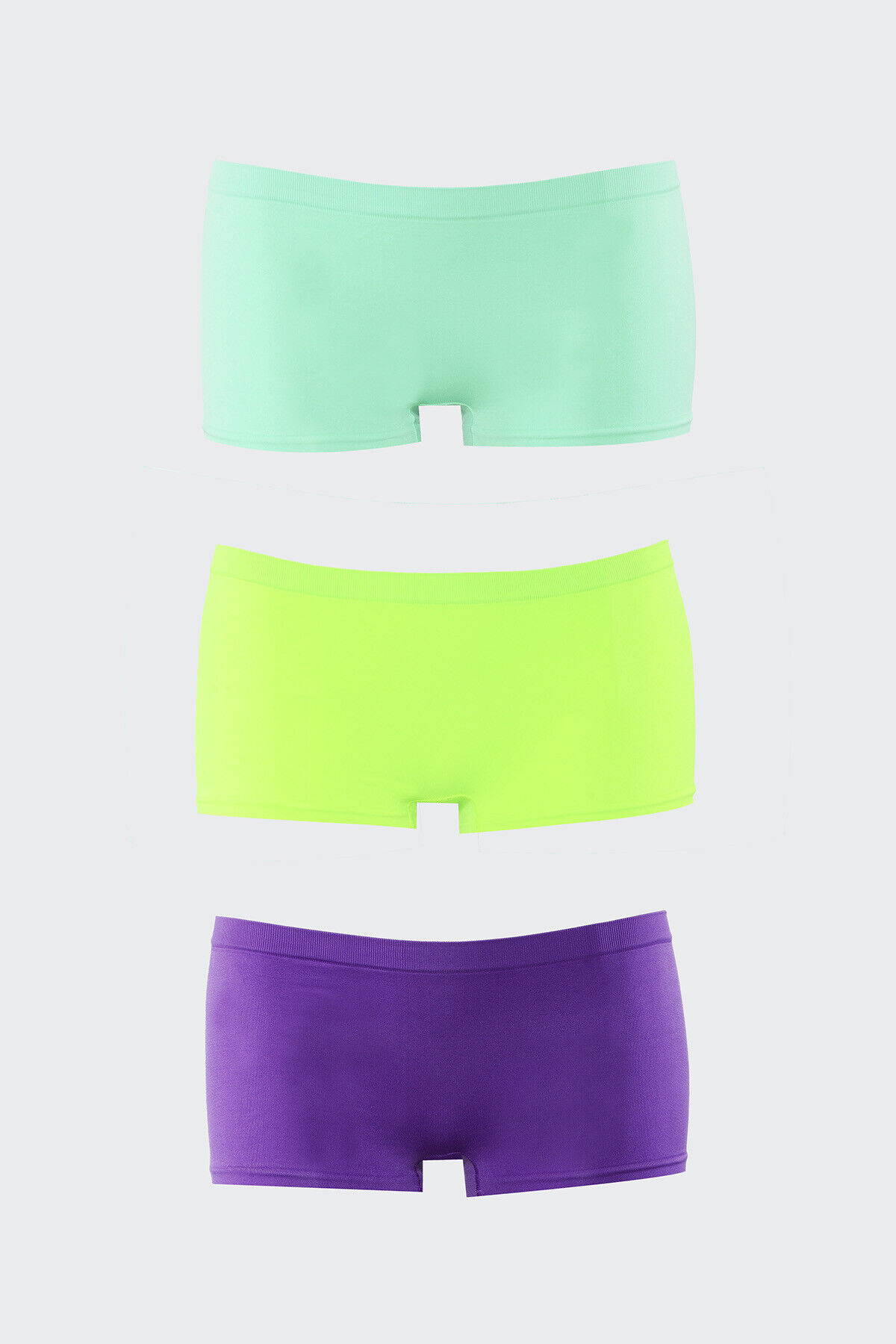 Neon Mor Yeşil Turkuaz Dikişsiz 3lü Ağlı Şort Külot