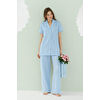 %100 pamuk kumaştan üretilen bu pijama takımı, doğal ve nefes alabilen yapısı ile gün boyu konfor sunar. Hafif ve yumuşak dokusu sayesinde ciltle uyumlu olup, özellikle sıcak havalarda ferah bir kullanım sağlar.