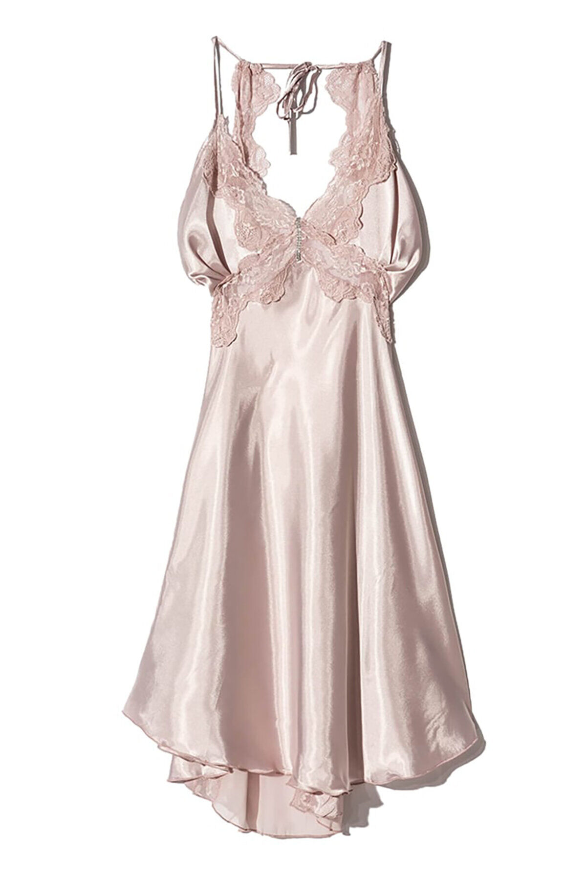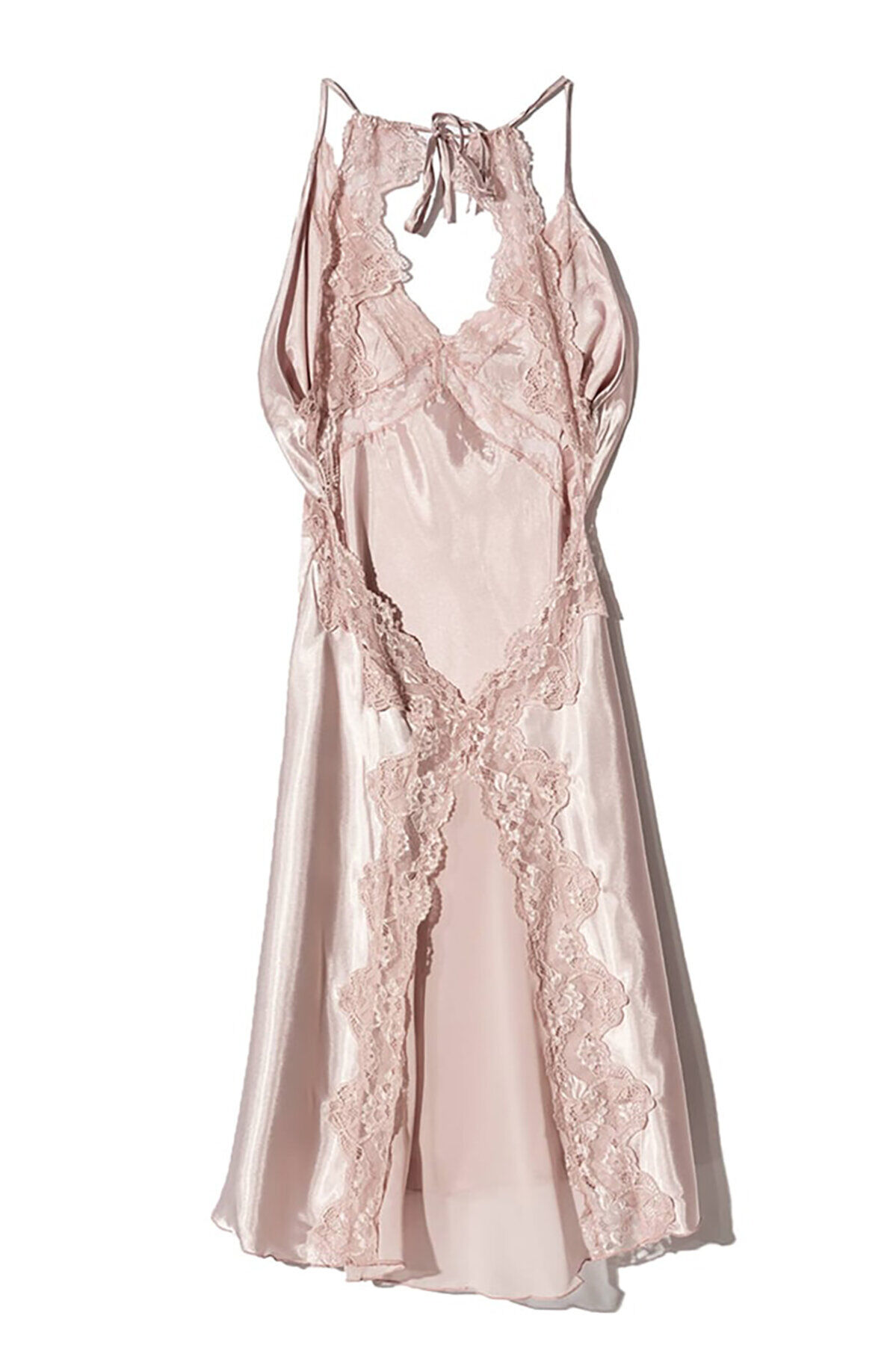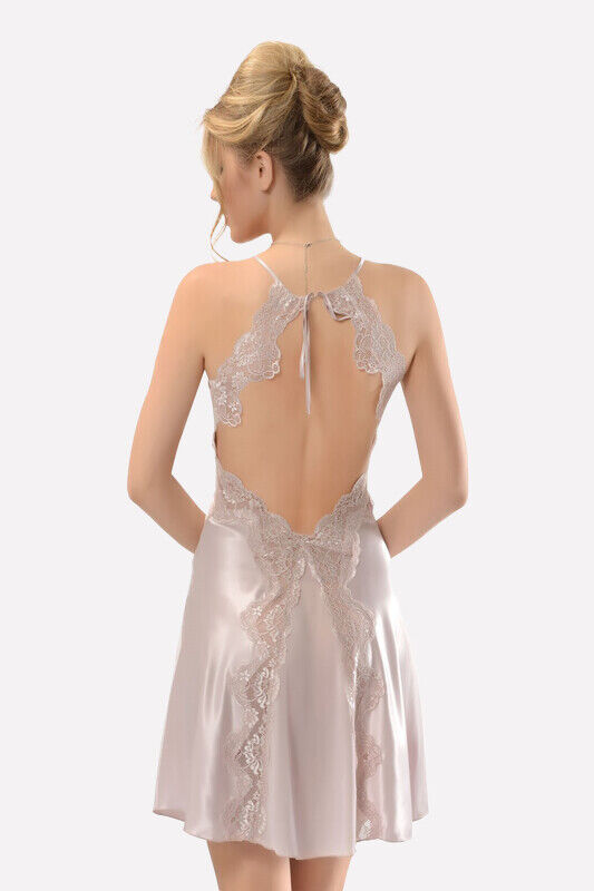 Pudra Saten Sırt Dekolteli Gecelik