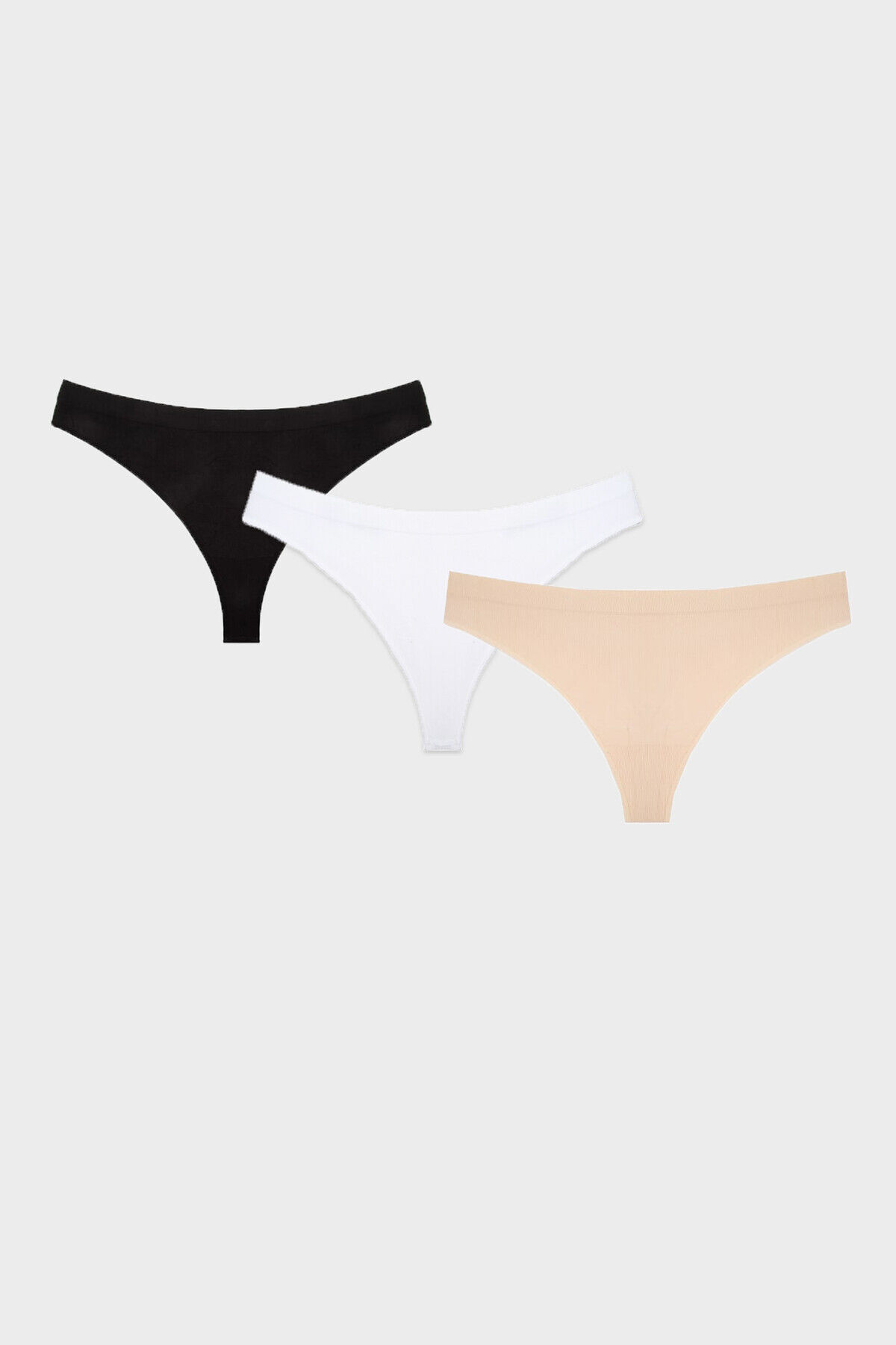 Siyah Beyaz Ten Rengi Dikişsiz 3lü String