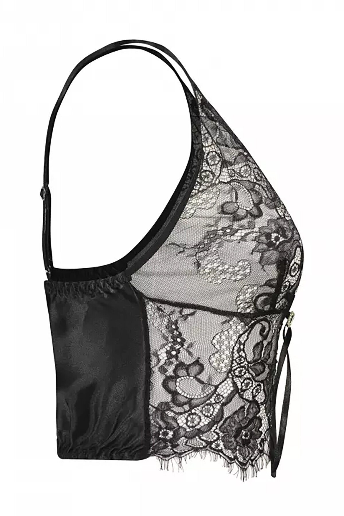 NBB Siyah Dantelli Saten Şortlu Sabahlık Takımı