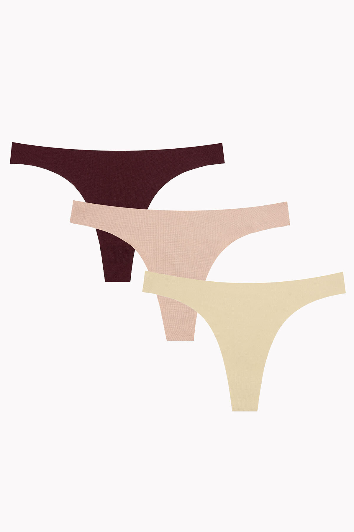 Ten Bordo Cappuccino 3lü Lazer İz Yapmaz Kesim Tanga