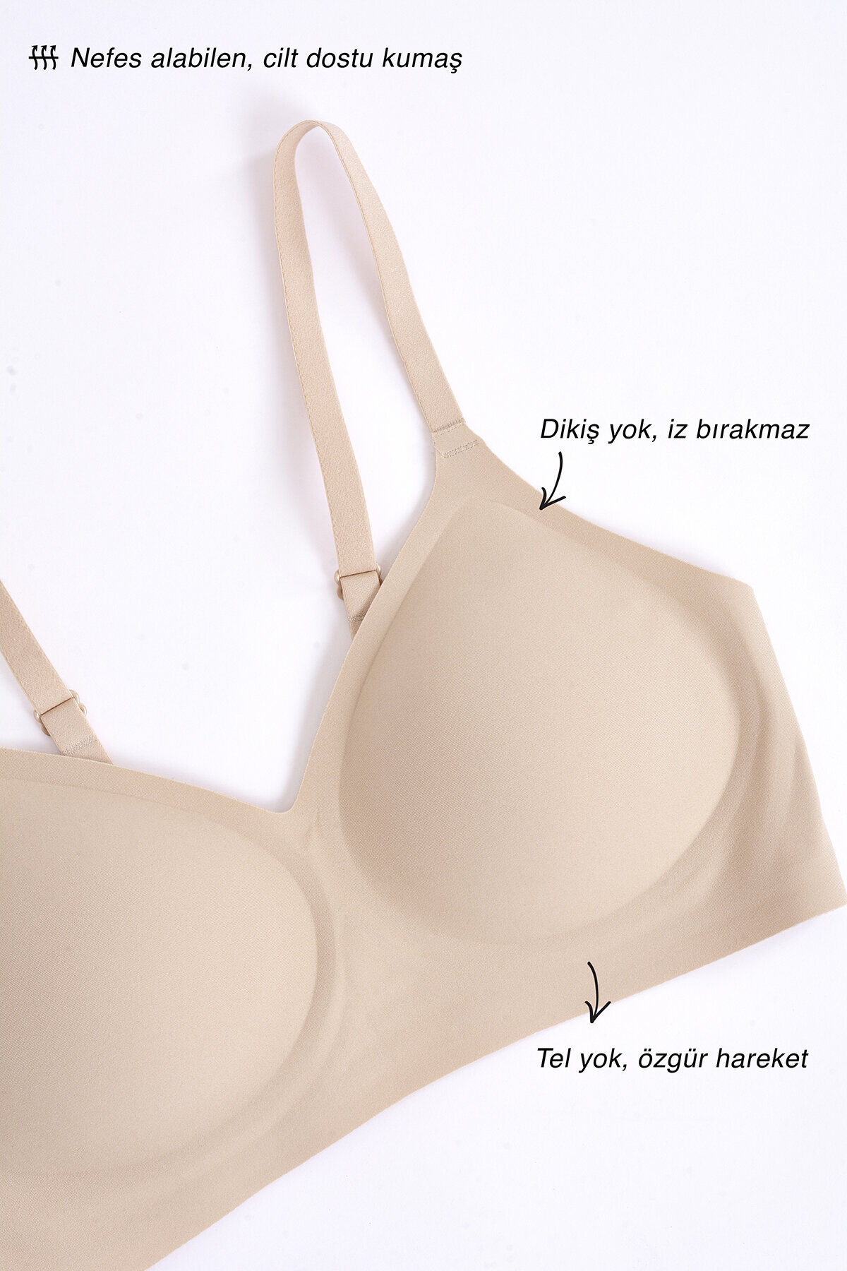 Dikişsiz ve yapıştırma teknolojisi → kıyafette iz bırakmaz