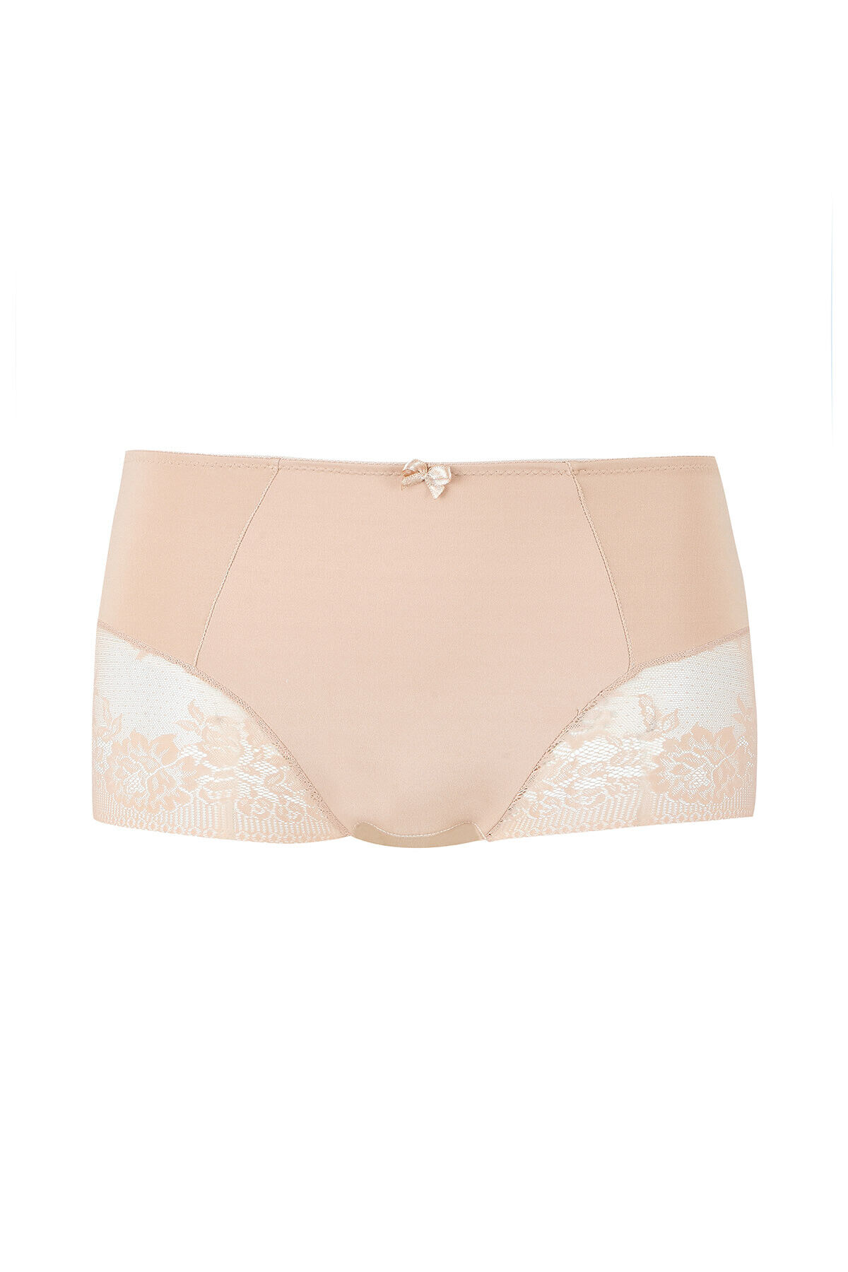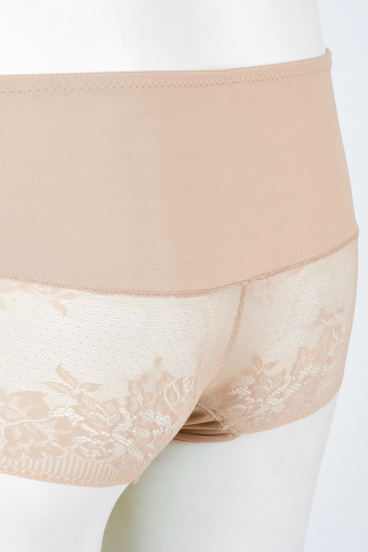 Şekillendirici paneller karnı düzleştirmeye ve beli şekillendirmeye yardımcı olarak kıyafetlerin altında pürüzsüz bir silüet sunarken çiçekli dantel katmanlar kadınsı bir görünüm oluşturur.