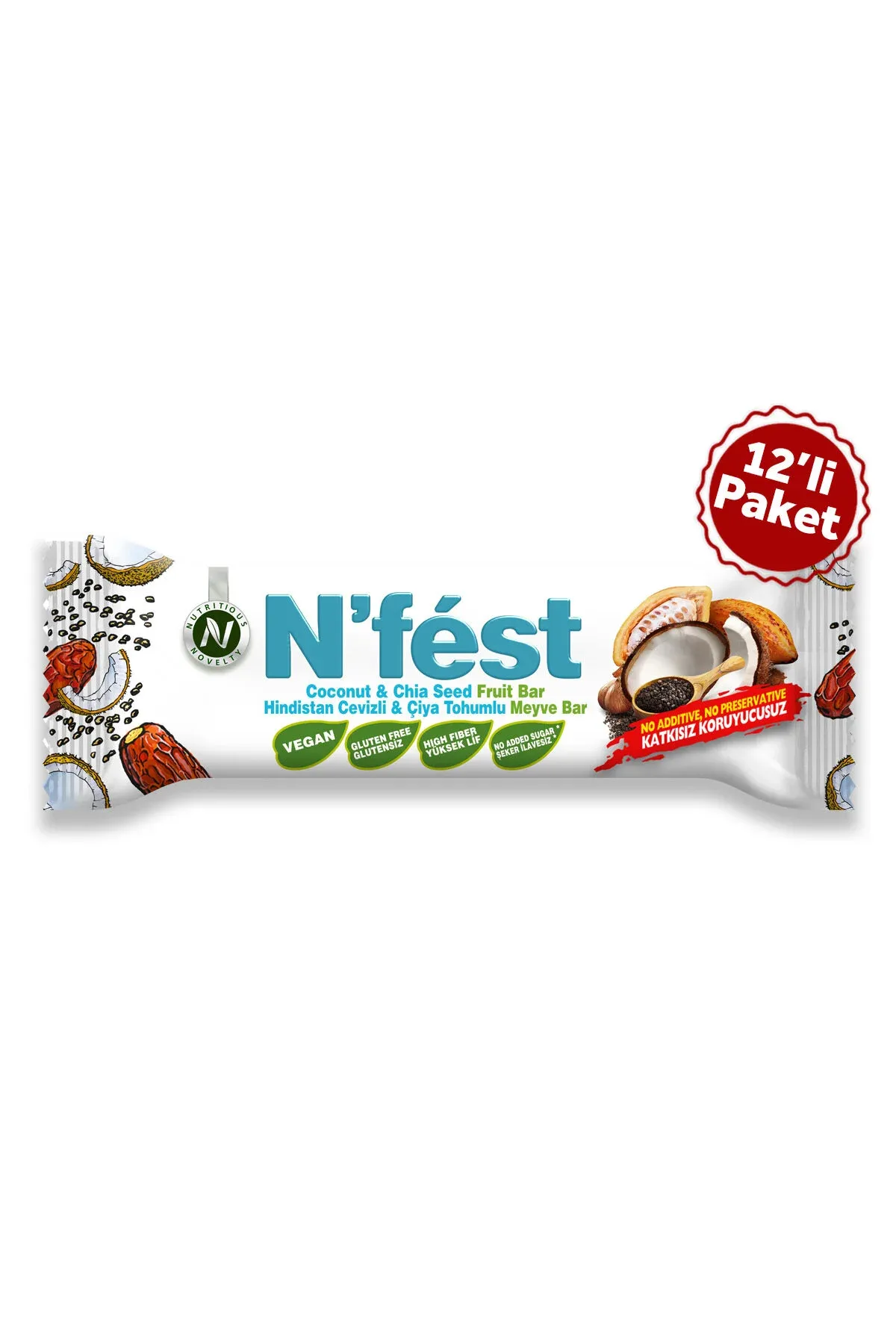 N'Fest Meyve Bar Hindistan Cevizli ve Çiya Tohumlu 40g x 12 Adet