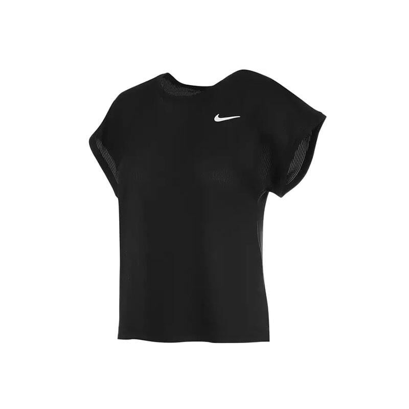 Nike Court Victory Dri Fit Kadın Siyah Yuvarlak Yaka Tişört, modern tasarımıyla dikkat çeker.