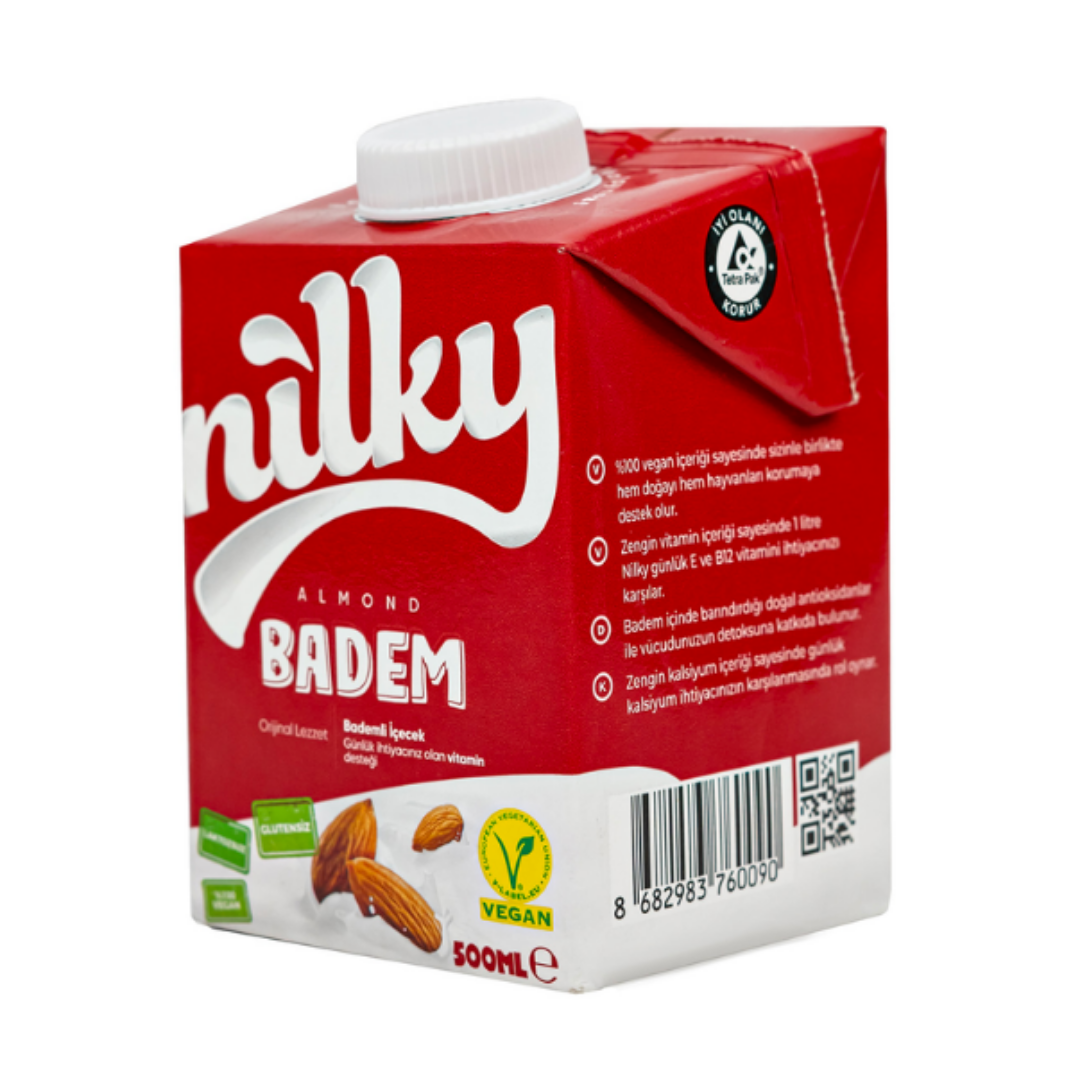 Nilky Badem Sütü 500ml dövülmüş bademden elde edilerek inek sütü yerine kullanılmak üzere tasarlanmış bitkisel bir içecektir. Süt, laktoz ve kolesterol içermeyen formülüyle hem hayvansal süt tüketmek istemeyen hem de laktoz intoleransı yaşayan bireyler için pratik bir süt alternatifi sunar. Hafif badem tadı ve vanilya aroması ile kahvaltıdan kahveye, tatlı tariflerinden smoothie’lere kadar pek çok alanda kullanılabilen çok yönlü bir bitkisel içecek seçeneği haline gelir.