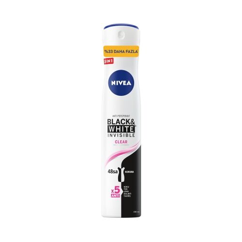 Nivea Deo Sprey, Invisible Black&White Clear formülü ile kadınlar için mükemmel bir terlemeye karşı koruma sunar. Güvenilir Nivea kalitesiyle geliştirilen bu deodorant, siyah veya beyaz kıyafetlerinizde leke oluşumunu engeller. Özel formülü sayesinde gün boyu ferahlık ve koruma sağlarken, cildinizi de nemlendirir.